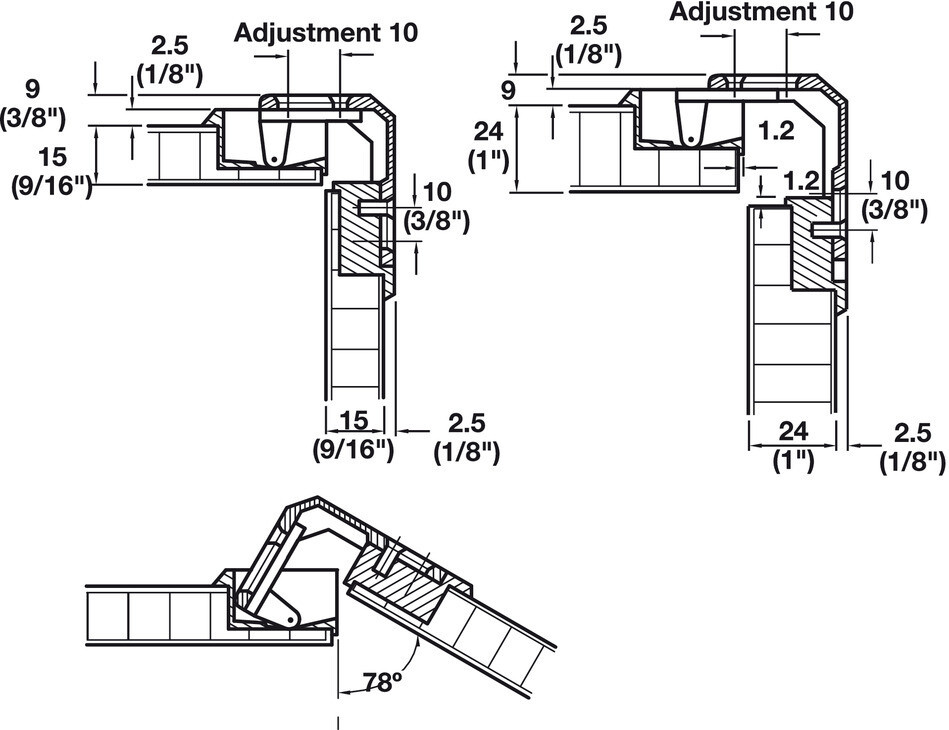 Elevate the functionality and aesthetic of your cabinetry with this Heavy Duty Full Inset Adjustable Concealed Pie-cut Corner Cabinet Door Hinge, designed for a sophisticated 78-degree opening angle. Perfect for applications where the door needs to sit flush within the cabinet frame, this hinge brings precision and elegance to panel or face-frame cabinets.