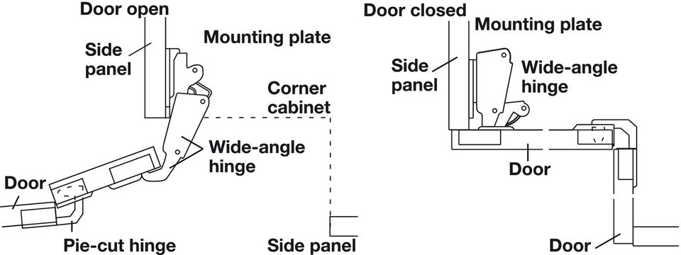 2-Pack A- Series Pie-Cut Corner Cabinet Door Hinge with 78-Degree Opening Angle