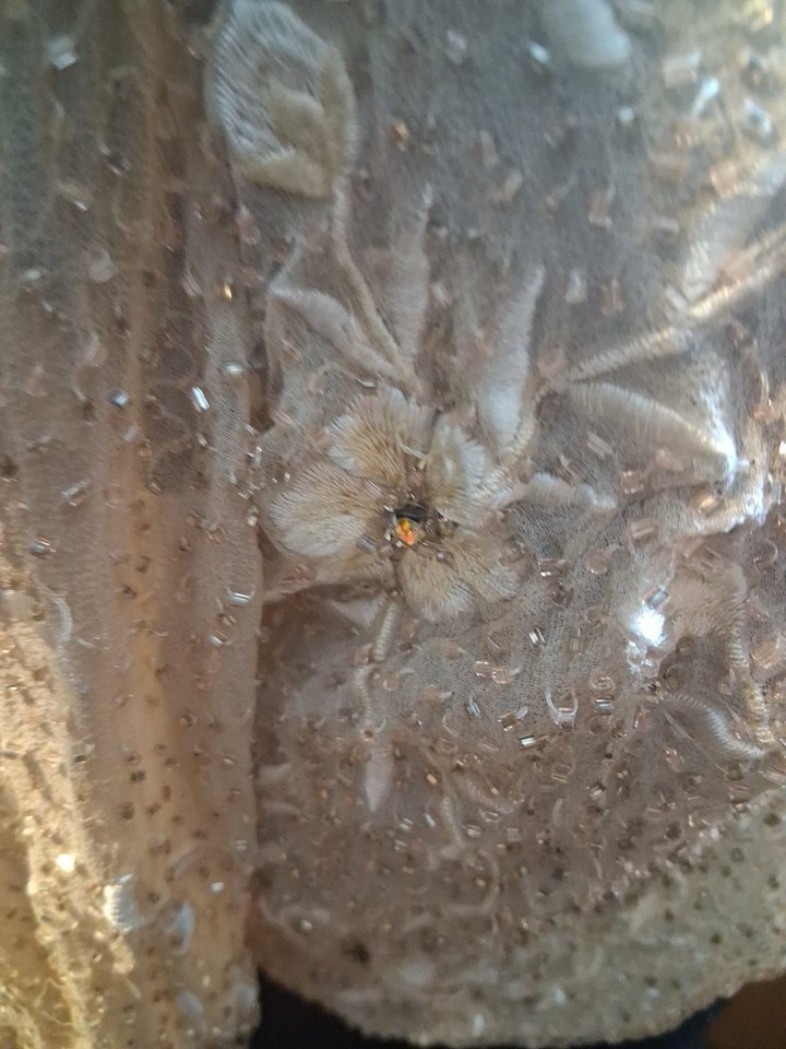 Silk Beaded Jacket Formal Wedding Cocktail Party Size 6 Beige Long Sleeve Floral