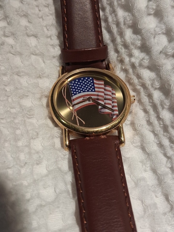 Unisex VALDAWN American Flag Patriotic 4th of July Gold Tone Watch New Battery