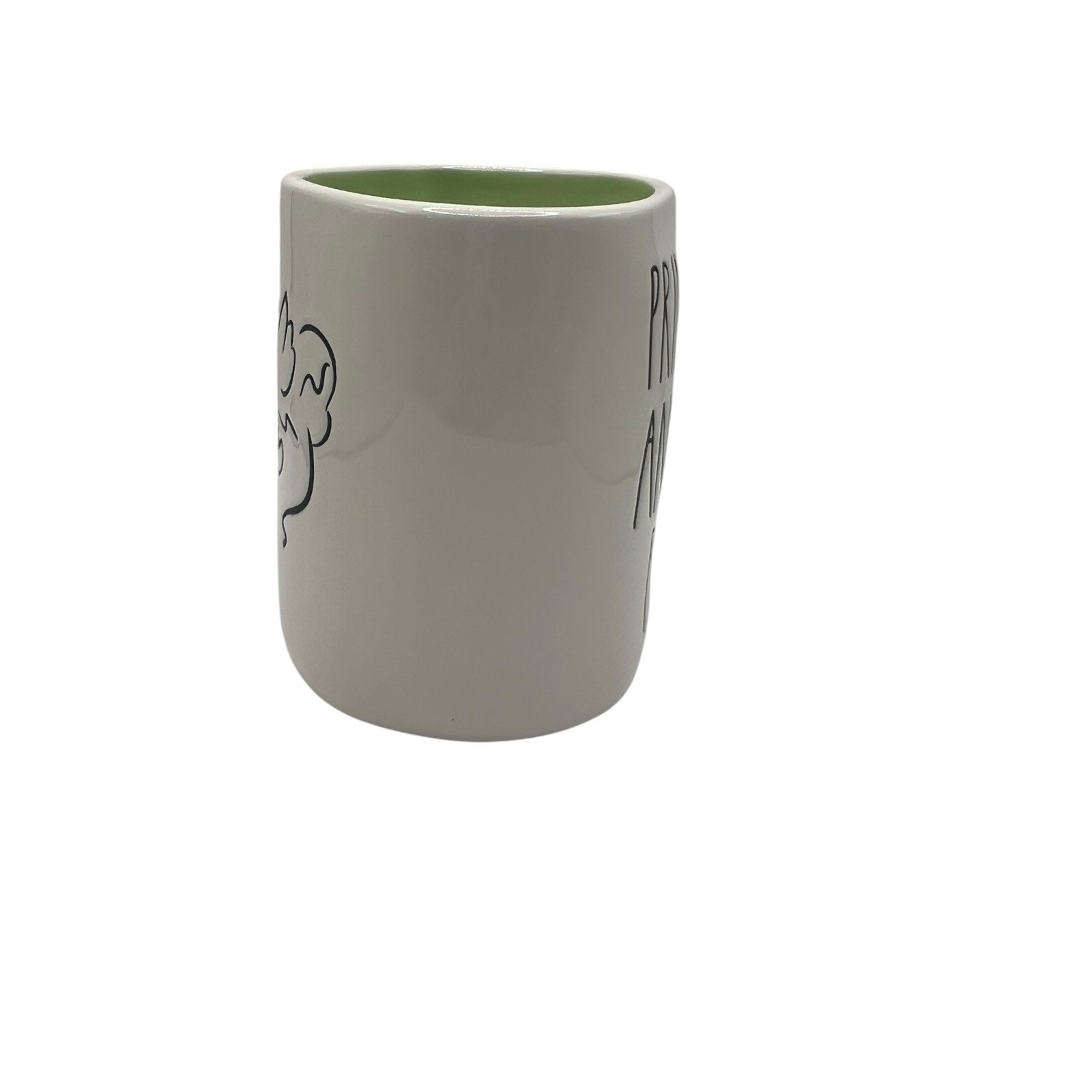 This is a Rae Dunn ceramic mug featuring Disney Princess Tiana and The Frog design. The mug is ivory-colored with a glossy finish and is both microwave and dishwasher safe. It is part of the Rae Dunn product line and is decorated with a contemporary style. This mug is perfect for enjoying green tea or coffee in a Disney-themed way.