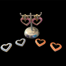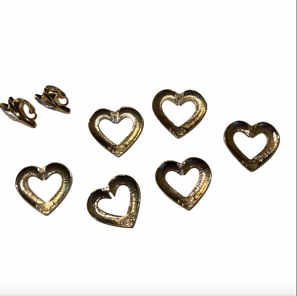 Enamel Earrings NEW Hearts Rhinestone Gold Trim Clip On Signed Roland 3 - 4 Pair