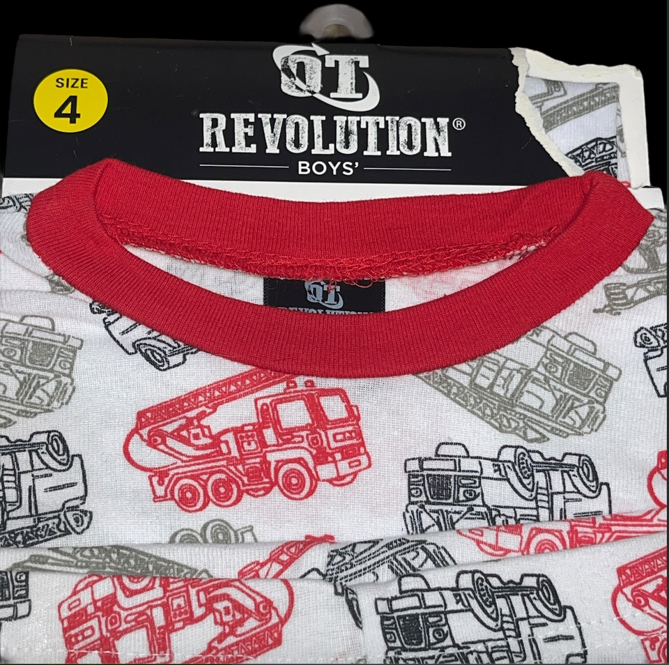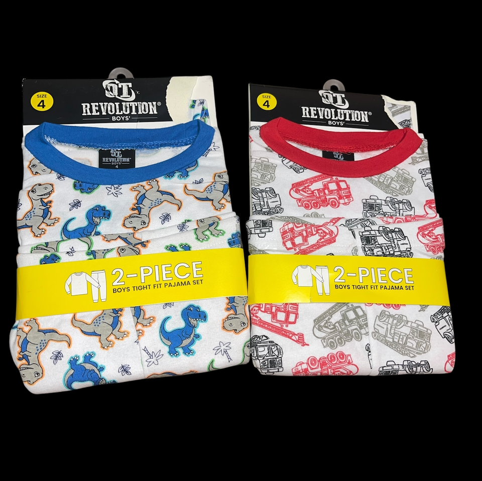 OT Revolution Boys 2 Piece Pajama Set Outfit FIRETRUCK Dinosaur Lot of 2 Size 4