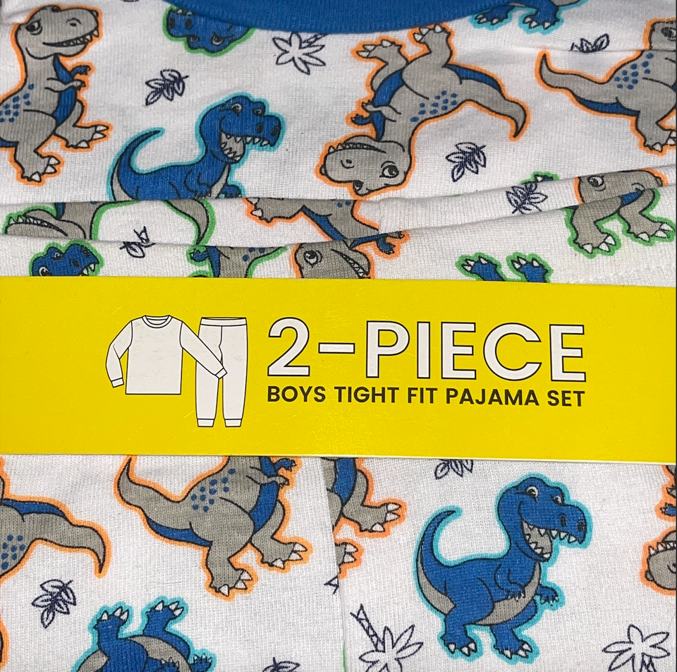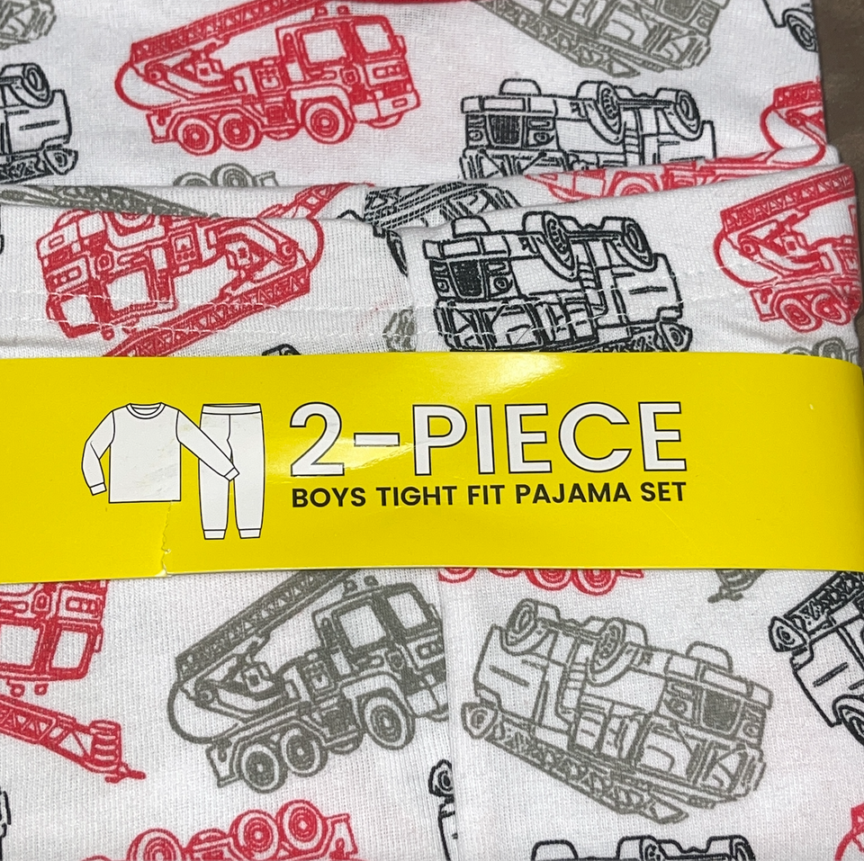 Lot of 2 pairs of PJ's, new. The cardboard holder on both sets is tore at the corner, but the sets are both new. Size tag 4. Includes shirt and pants pajama set, snug fit. Super cute dinosaur pattern on one and firetrucks on the other. Please see all galley photos. We are a smoke free, pet friendly home. Have a great day!