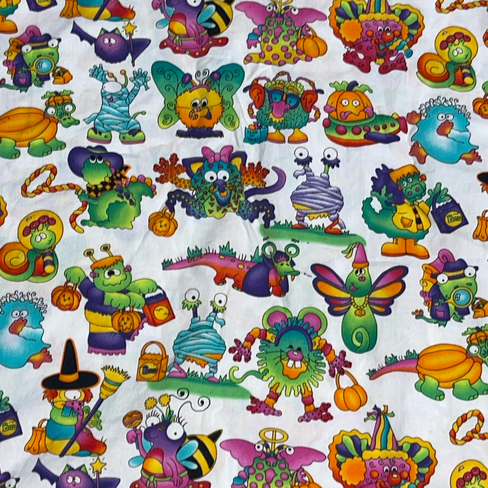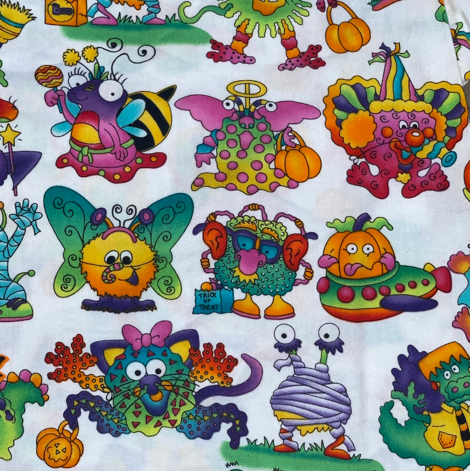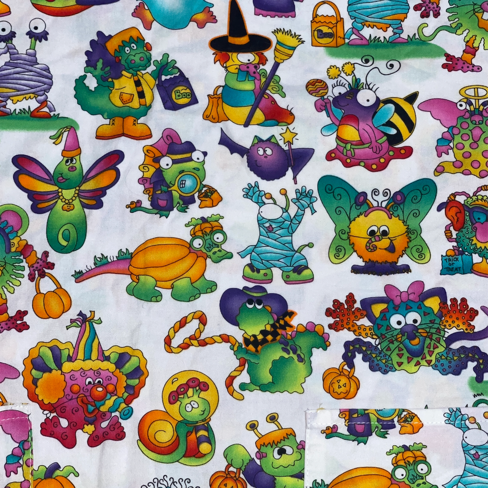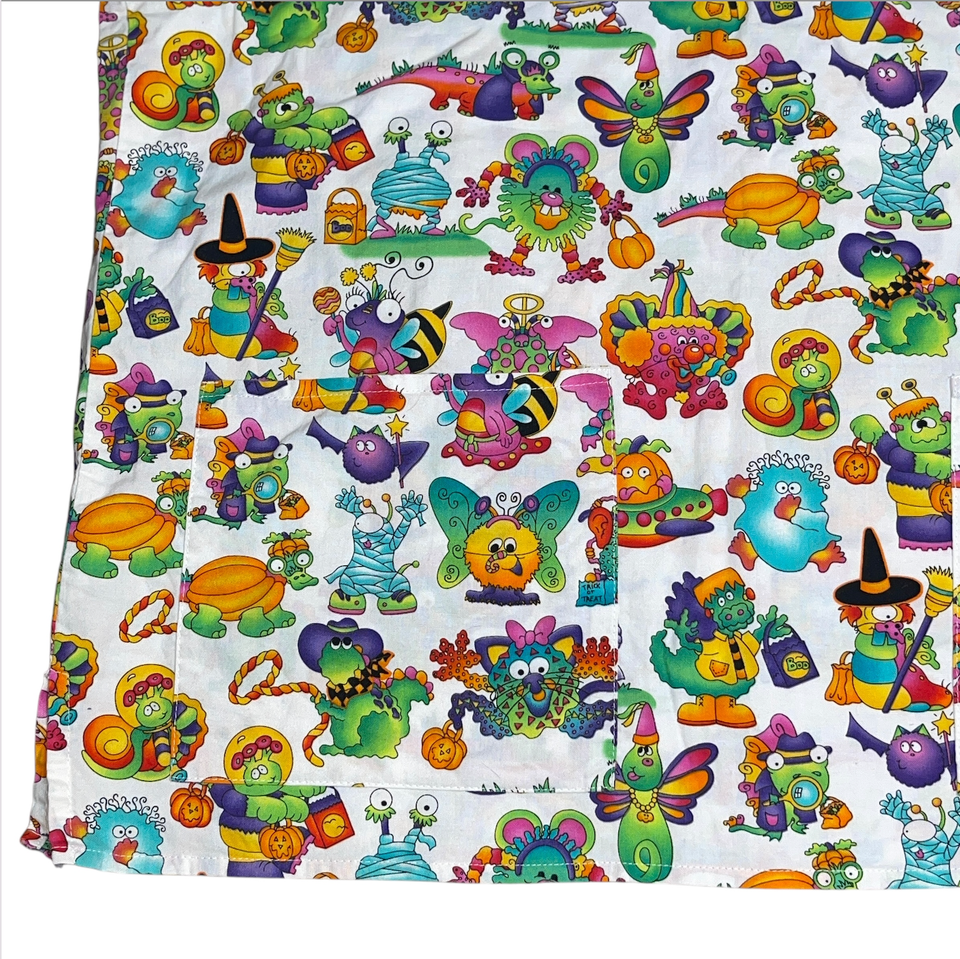 Life Uniform Whimsical Crazy Monsters Clowns Butterflies Large White Scrub Shirt