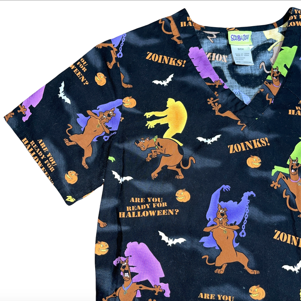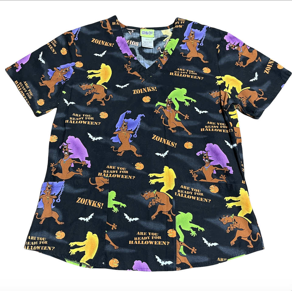 Scooby Doo Nurse Scrub Shirt Halloween Black Monster Zoinks Sz Small