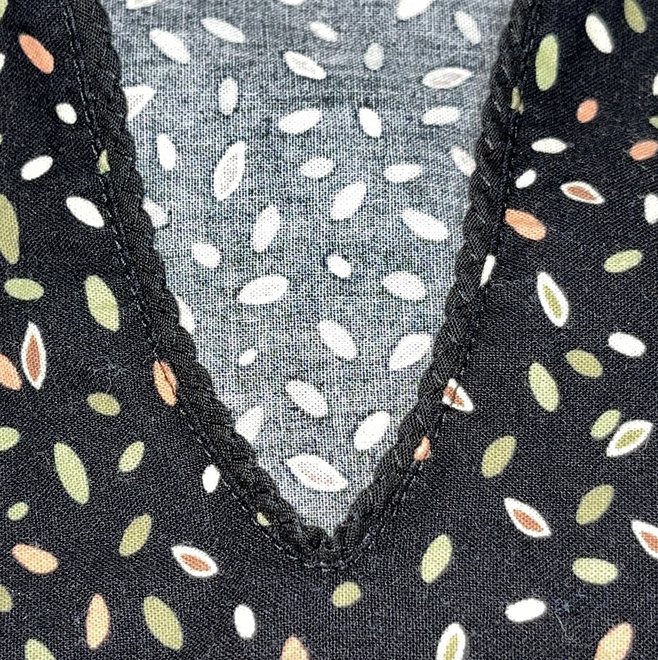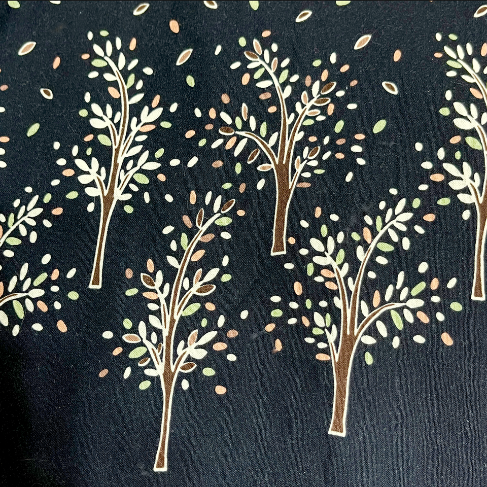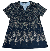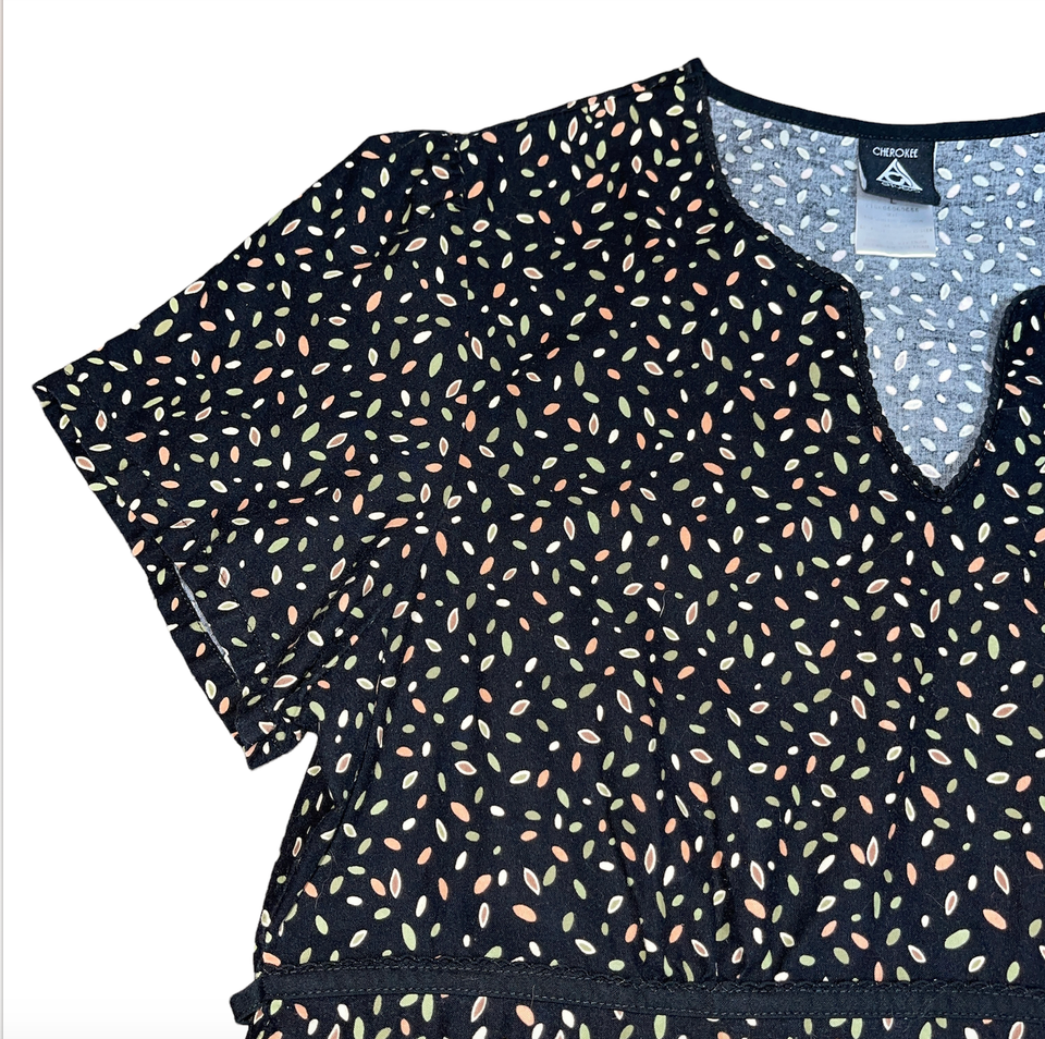 Cherokee Studio Scrub Top Shirt Womens Medium Black Brown Leaves Trees Fall READ
