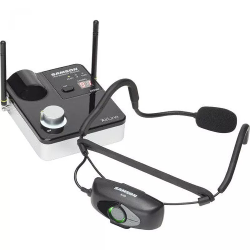 The Samson AirLine 99m AH9 Fitness Headset system is a unique wireless microphone solution designed to meet the specific demands of fitness instructors and other active performers. Along with a water/sweat-resistant Qe headset microphone, this frequency-agile UHF wireless system combines the AH9 micro transmitter and AR99m micro receiver for a highly-portable, rechargeable setup that offers high-definition sound completely free of cables and beltpacks.
