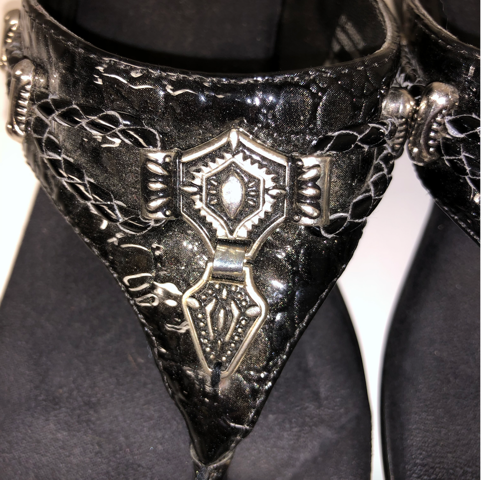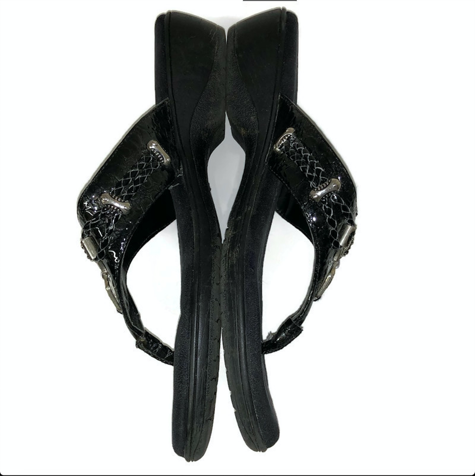 Rialto Women's Bailee Thong Flip Flop Sandal Shoes Size 9.5 Black Silver