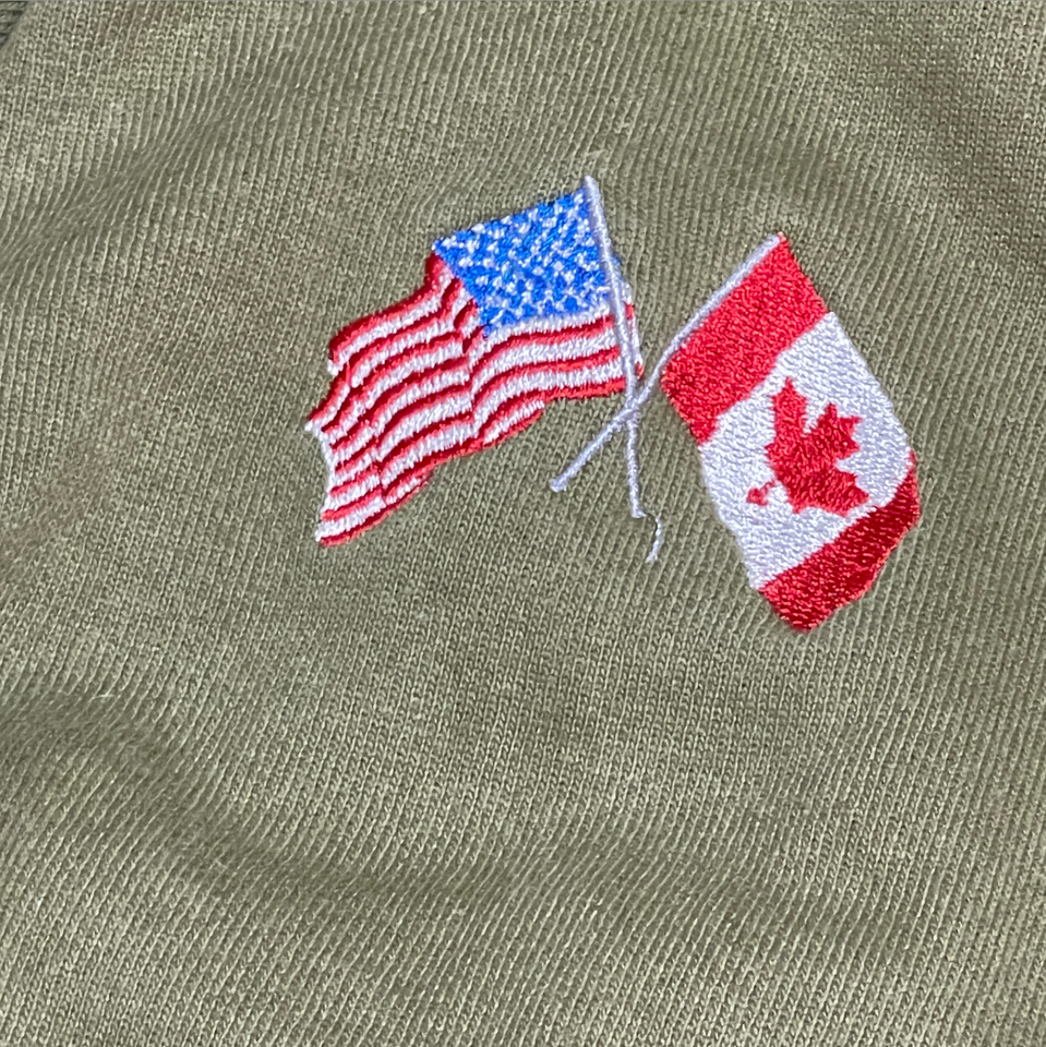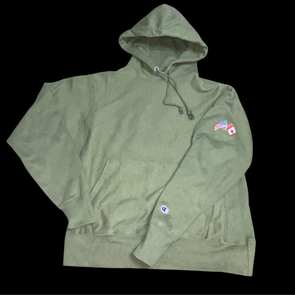 Excellent condition. Next to no sign of wear. Has the American Flag and Canadian Flag embroidered on one sleeve. Drawstring hood. Size tag M Medium. Measures 23 inches across the chest and 26 inches overall length. Please see all gallery photos. We are a smoke free, pet friendly home. Have a great day!