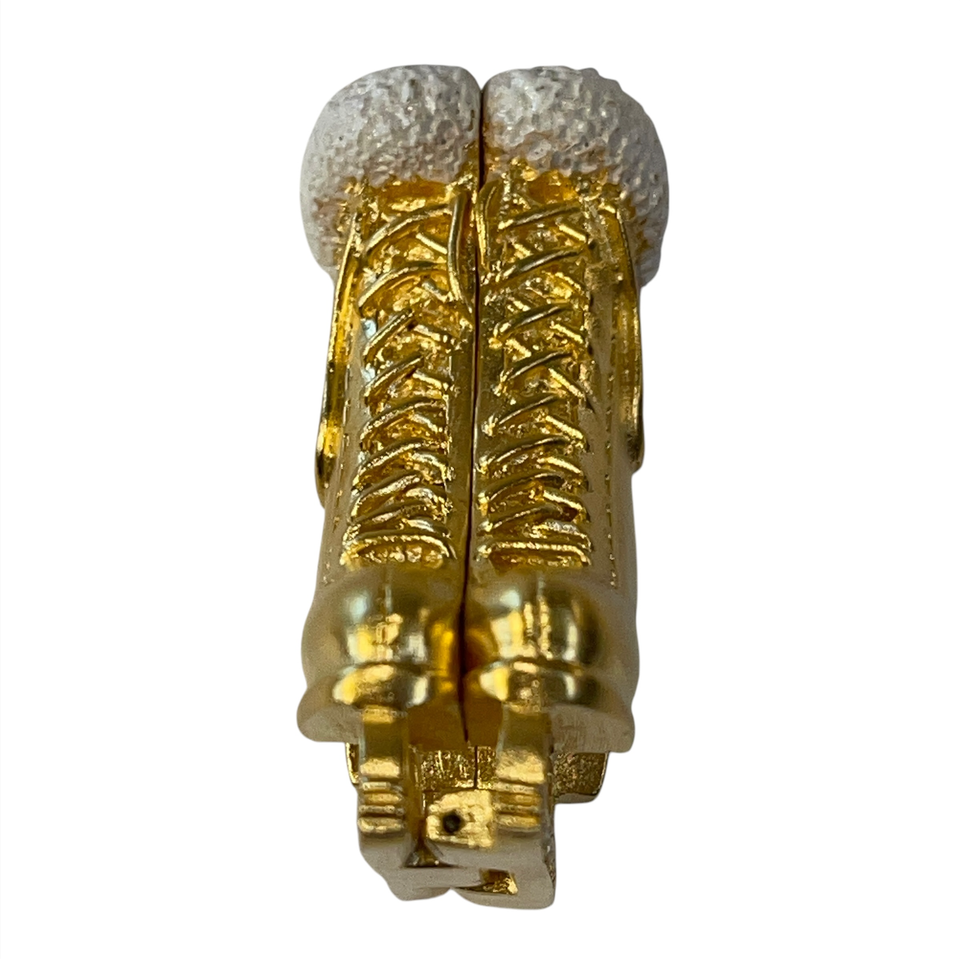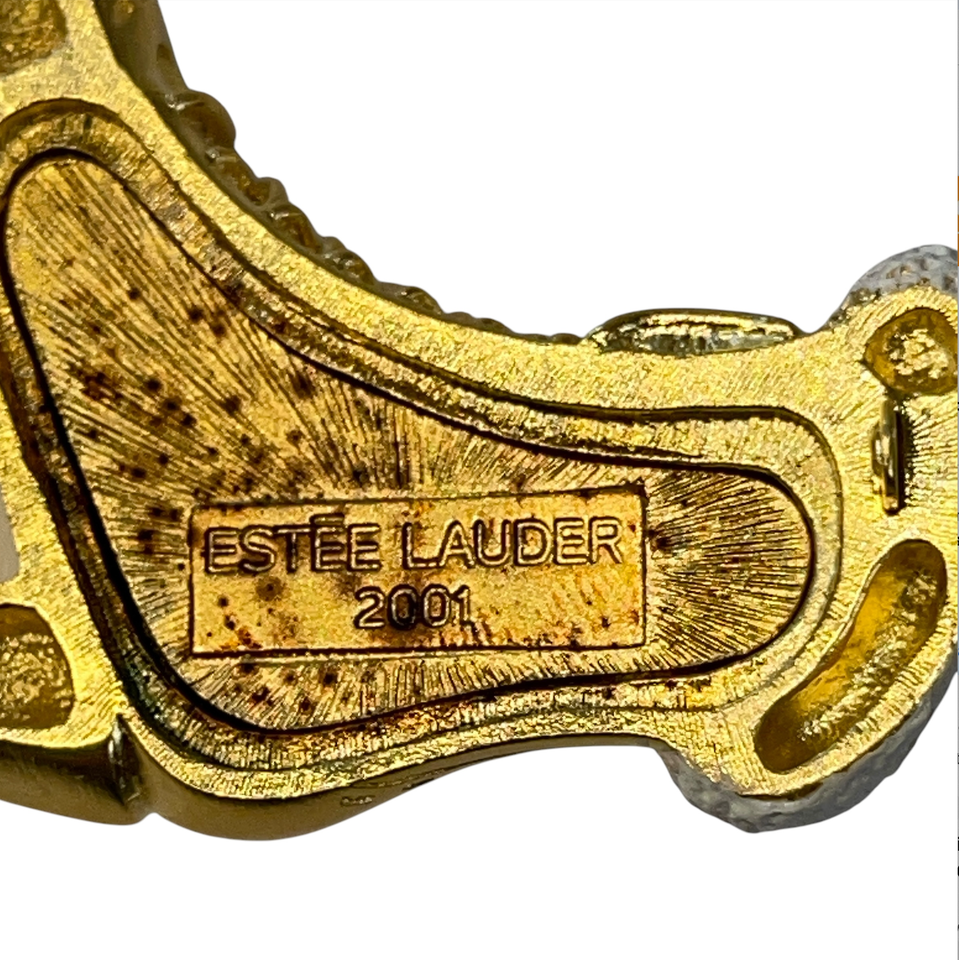 New old stock. 2001 Pleasures perfume by Estee Lauder. Ice Skates Compact for solid perfume. Gold tone with crystals. Set with clear crystals. Made in canada. Gorgeous exquisite piece. The original perfume is included. Note to buyers: This compact is sold as a collectible piece. Its age and history may make it better suited for display rather than use! Set includes original presentation boxes. Please see all gallery photos. We are a smoke free, pet friendly home. Have a great day!