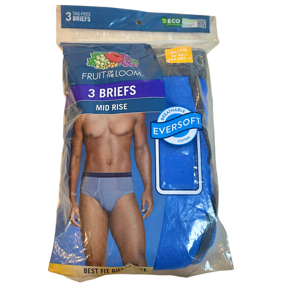 3 Pair Men's Fruit of the Loom Fashion Mid-Rise Briefs Underwear Sz XL (40-42)