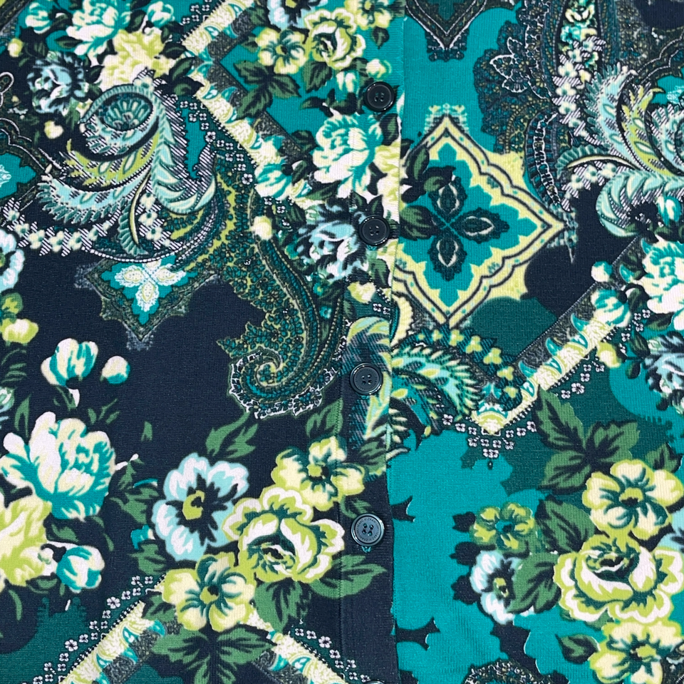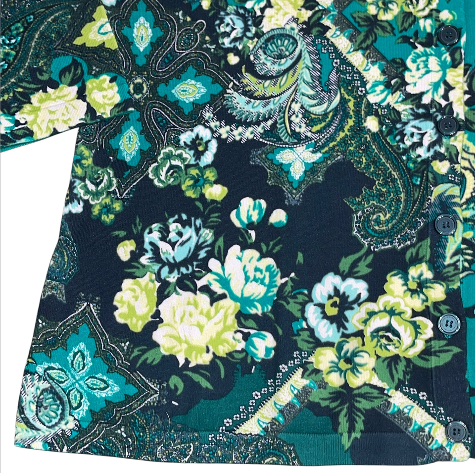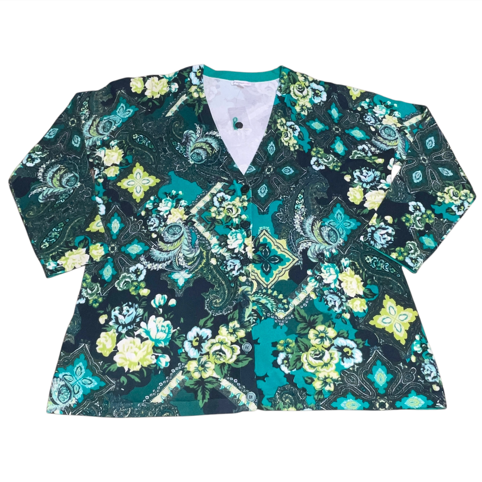 Isaac Mizrahi Live! Womens 2X Green Floral Paisley Cardigan Career Cottagecore