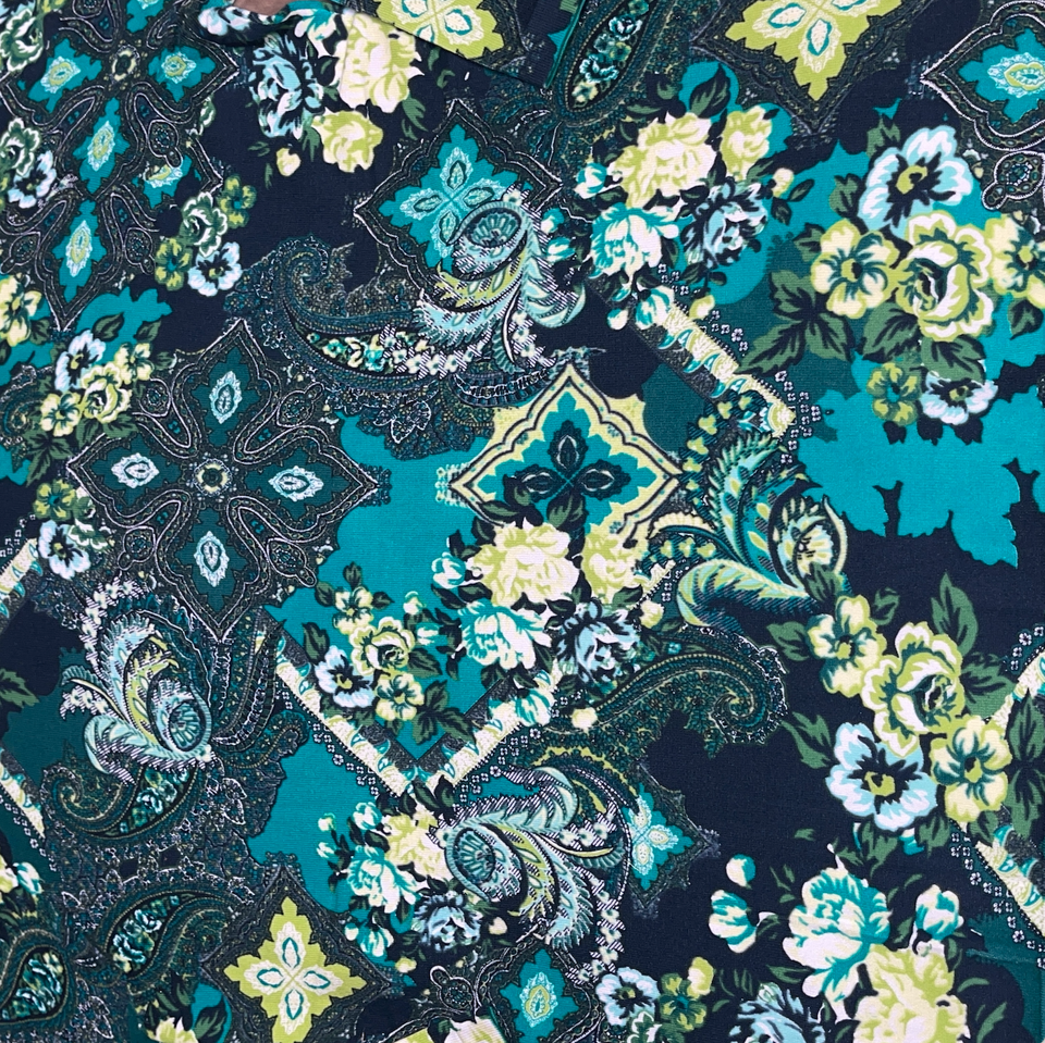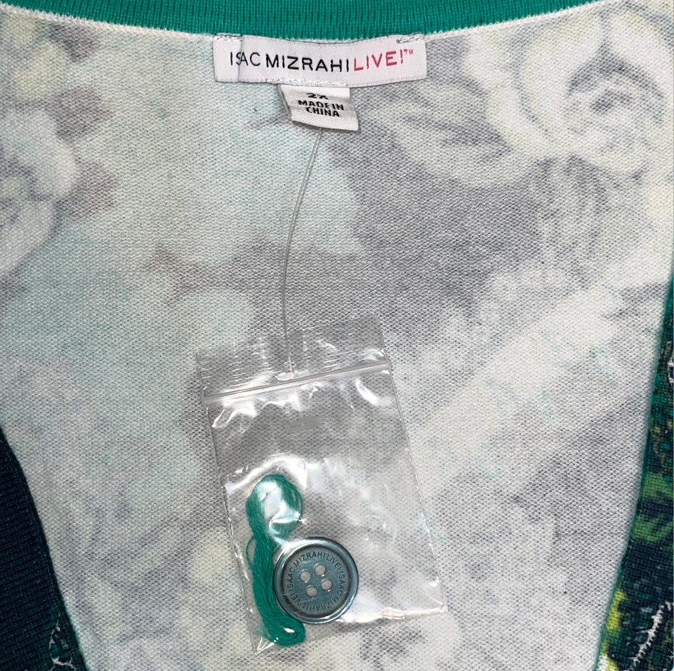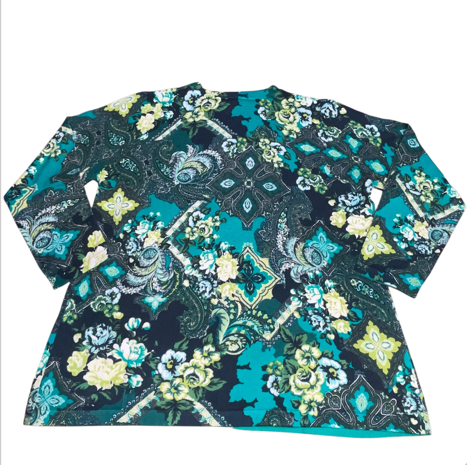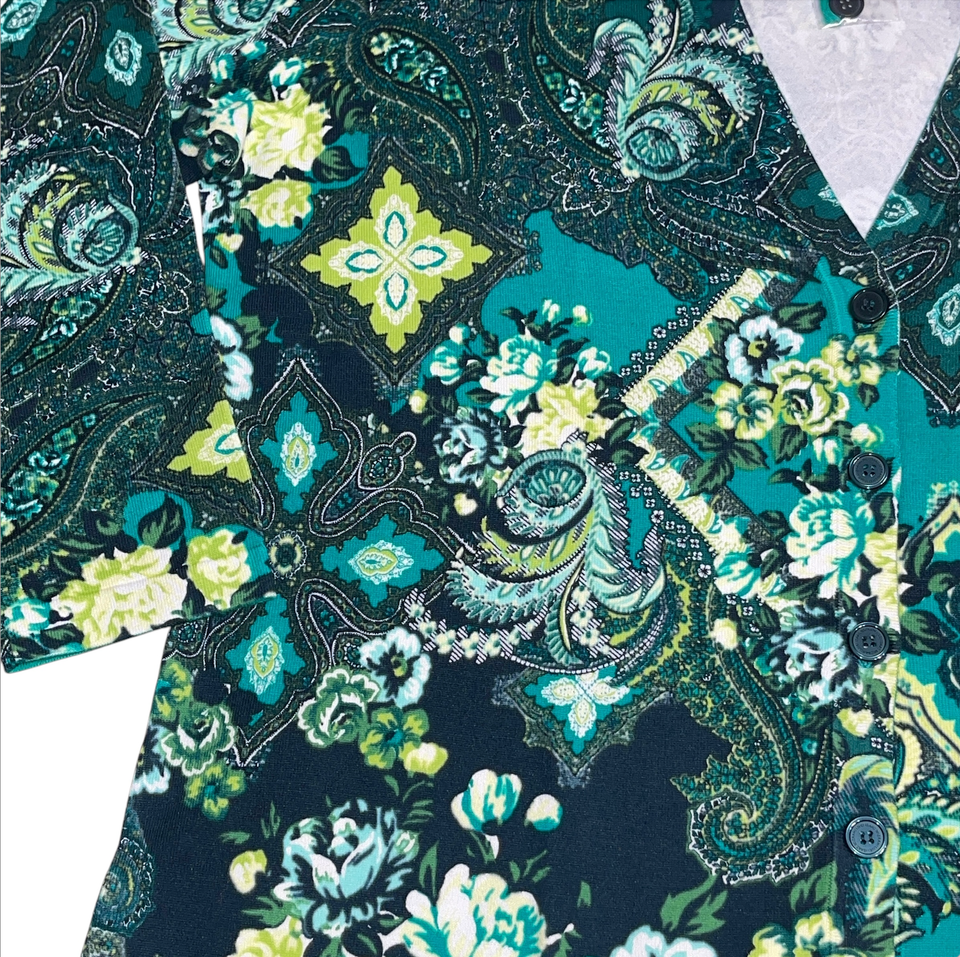 Isaac Mizrahi Live! Womens 2X Green Floral Paisley Cardigan Career Cottagecore