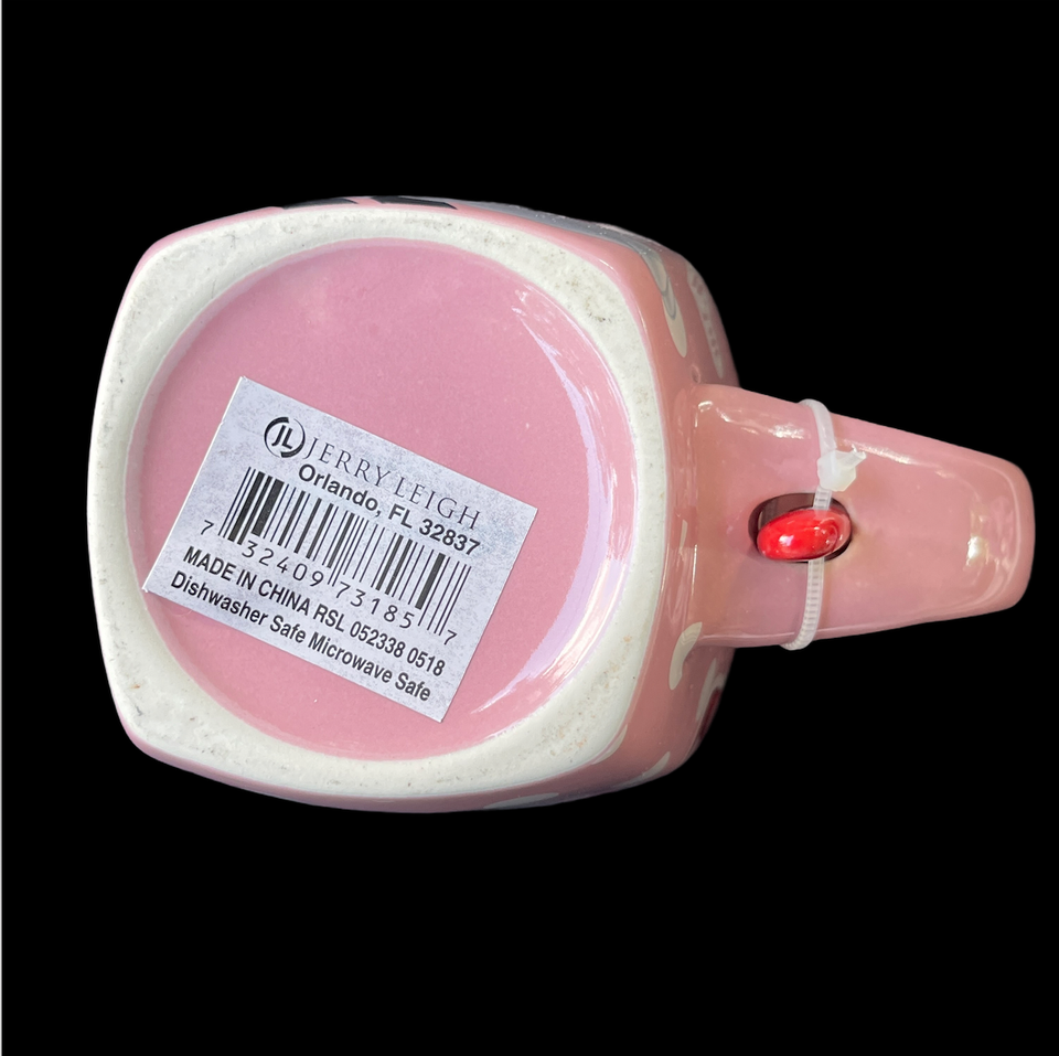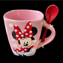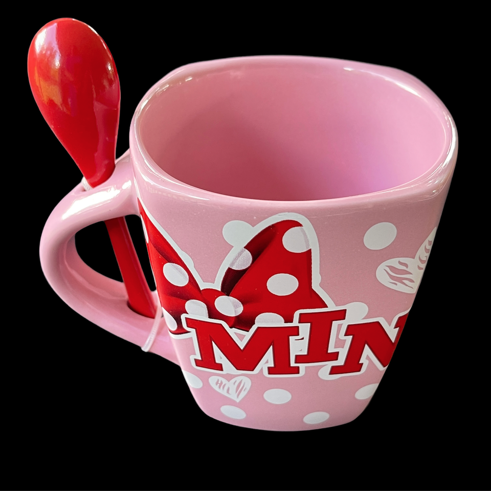 Disney Jerry Leigh Minnie Mouse Coffee Mug Mixing Spoon Pink Red Hearts Square