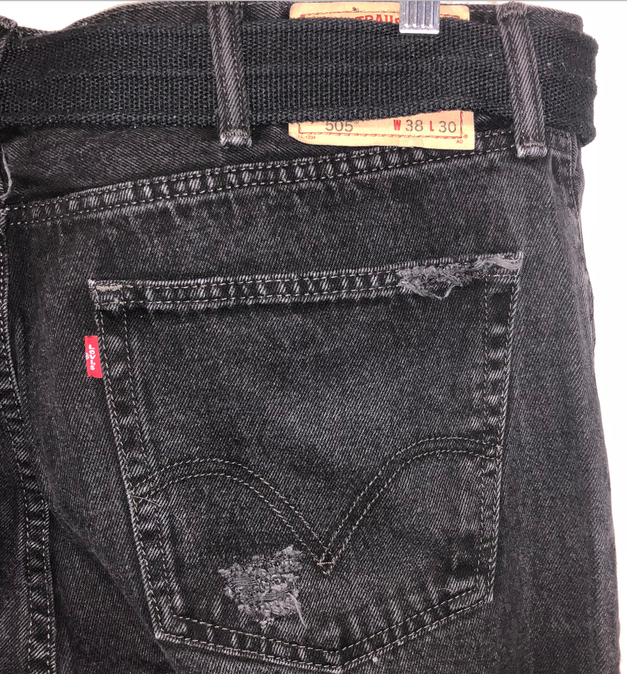 EUC Men's Levi's 505 Jeans Straight Fit Size 38 30 Black Distressed Red Tab