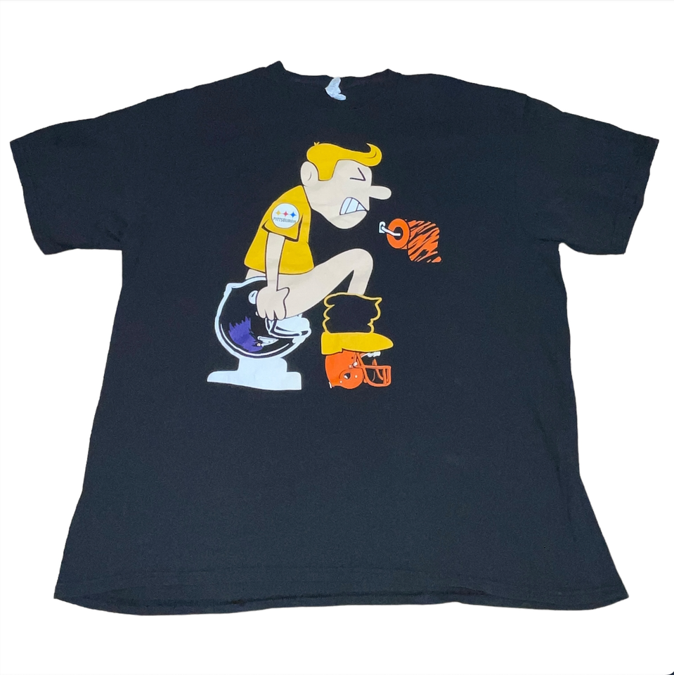 Very good condition. Delta pro tag. NFL Pittsburgh Steelers dropping a deuce on Cincinnati Bengals, Baltimore Ravens, and Cleveland Browns. Super fun Steeler fan smack talking graphic tee shirt! Size tag XL extra large. Measures 23 inches across the chest and 29 inches overall length. Fantastic tailgating shirt! Please see all gallery photos. We are a smoke free, pet friendly home. Have a great day!