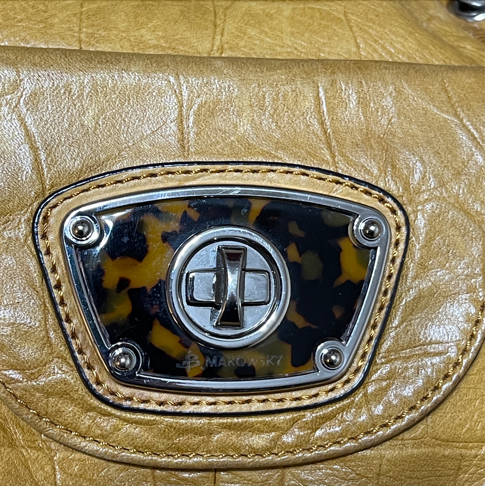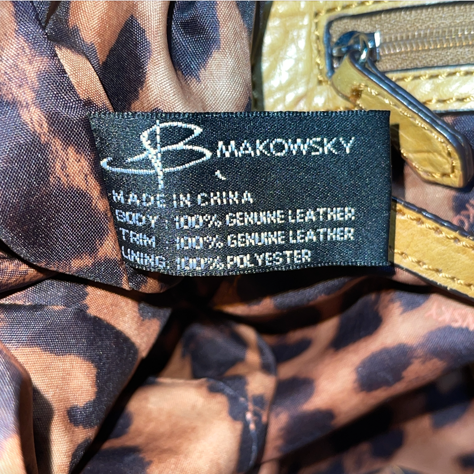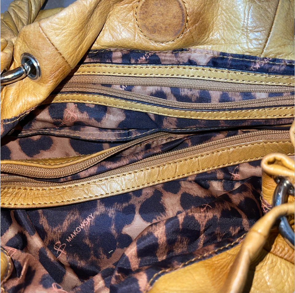 B Makowsky Mustard Yellow 100% Leather w/ Leopard Interior Purse Great Condition