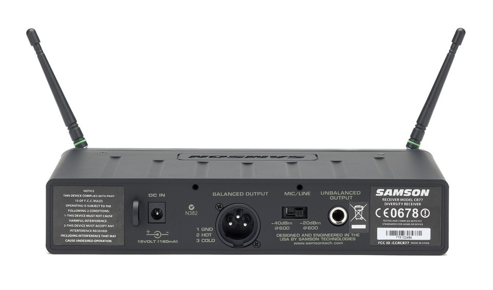 The CR77 True Diversity receiver provides reliable performance with up to 300' (90m) of wireless operation. Its half-rack housing is light enough to throw in your bag, or it can be permanently installed with a rackmount kit (sold separately). The rear panel features balanced XLR and unbalanced 1/4" outputs allowing flexible connection options.