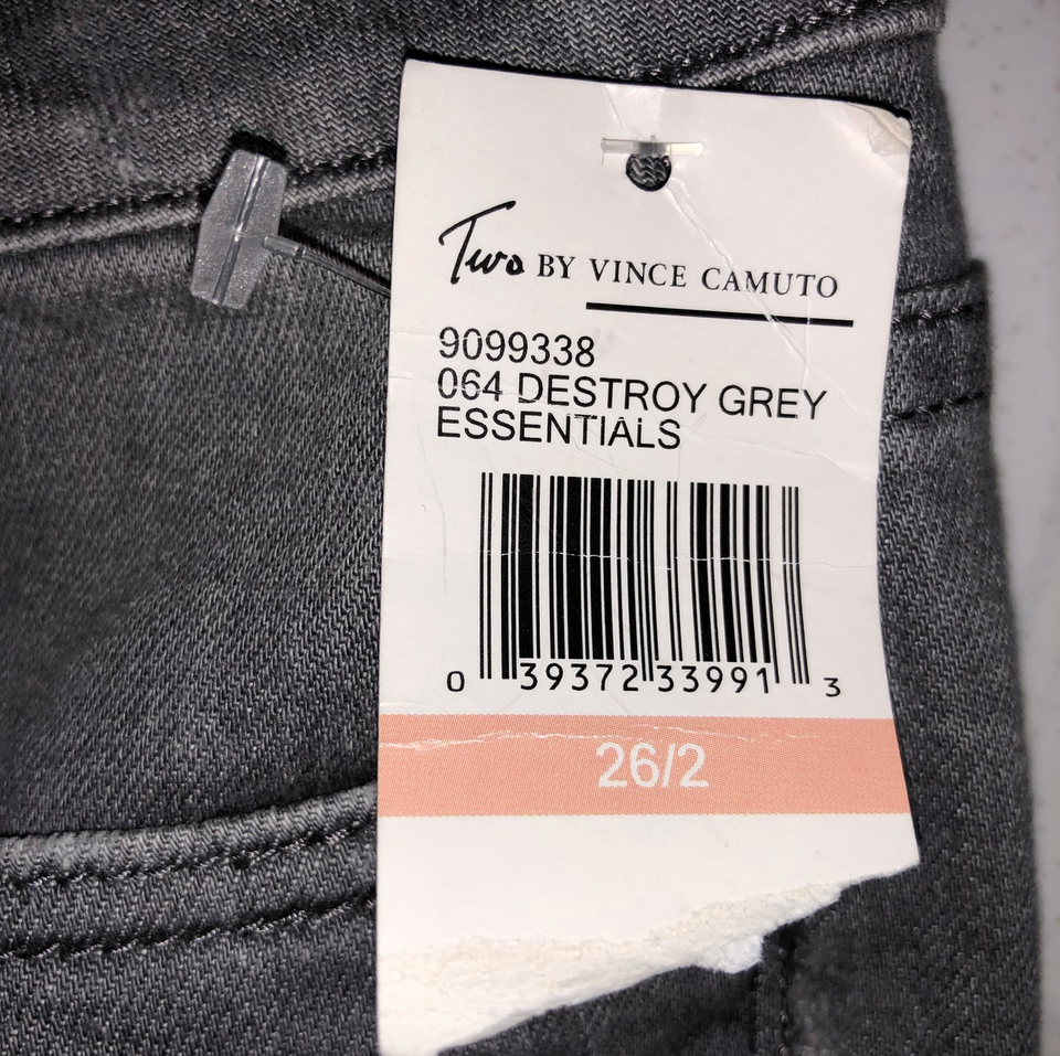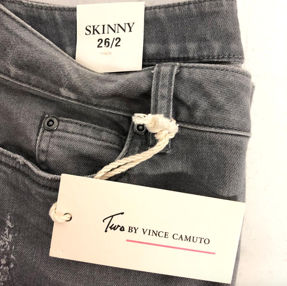 Two by Vince Camuto Destroyed Gray Ripped Distressed Skinny Jeans 26 2 NWT $119