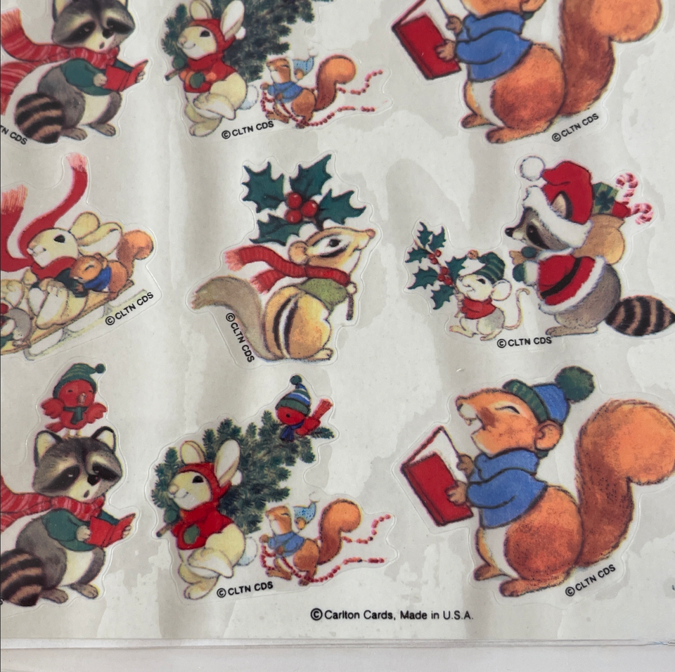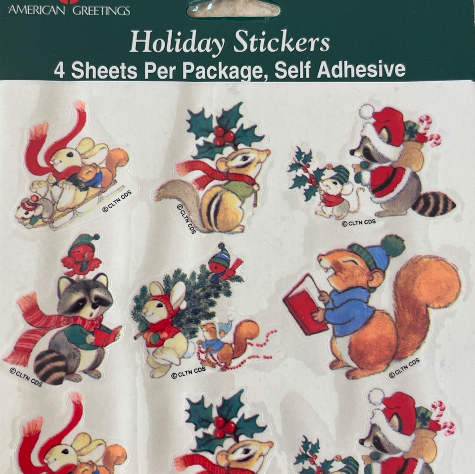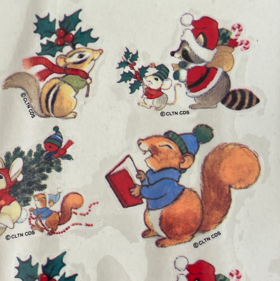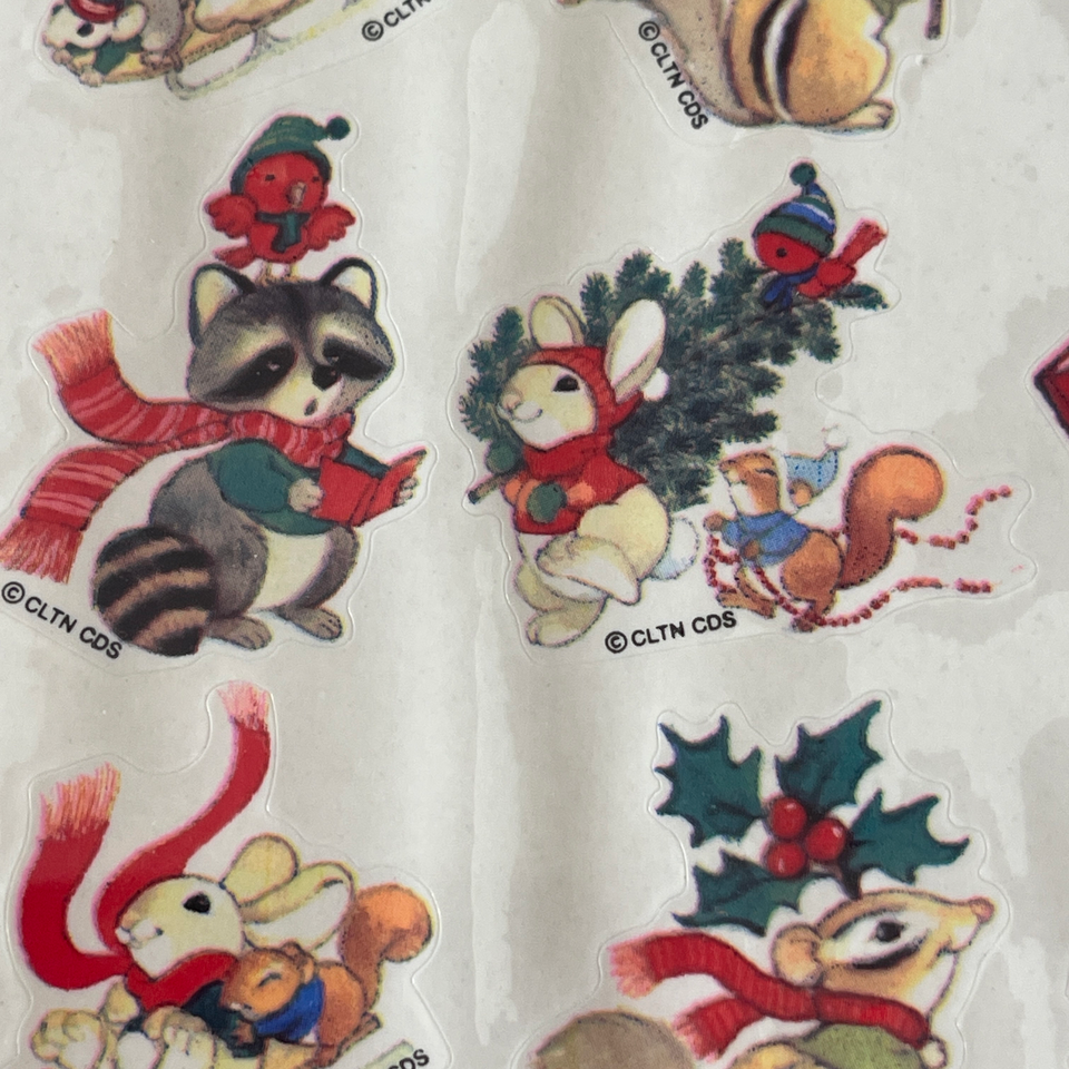 Vintage American Greetings Stickers Christmas Animals Raccoon Bunny 8 Sheets New