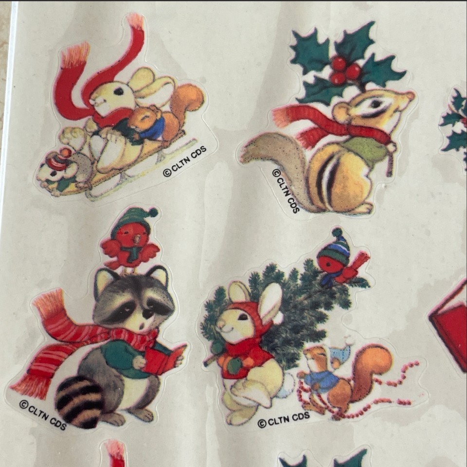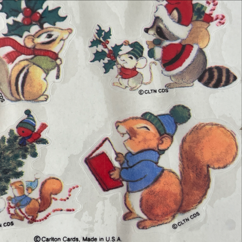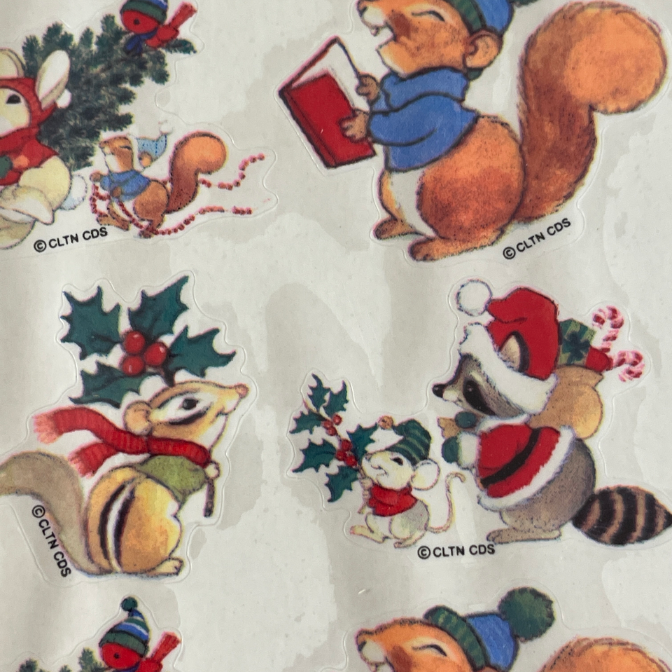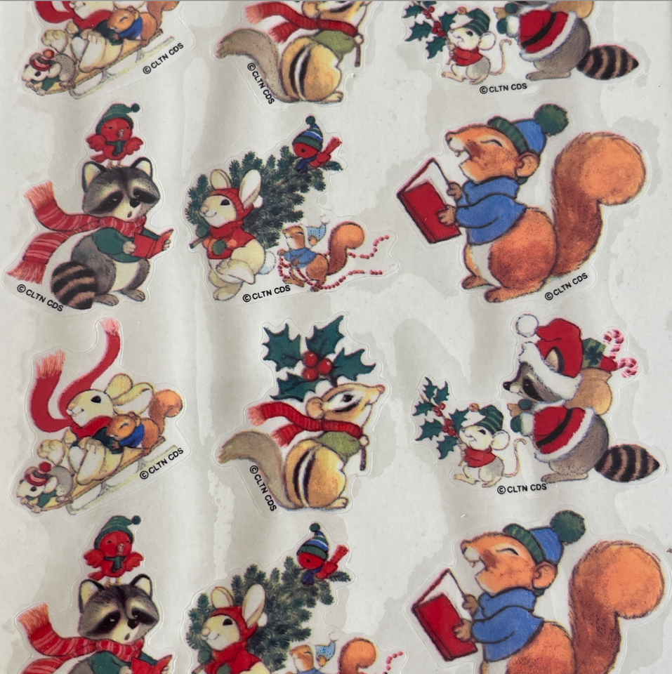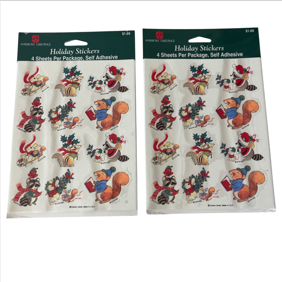 Vintage American Greetings Stickers Christmas Animals Raccoon Bunny 8 Sheets New
