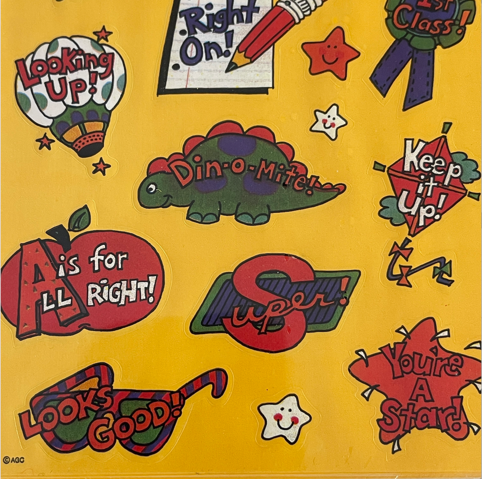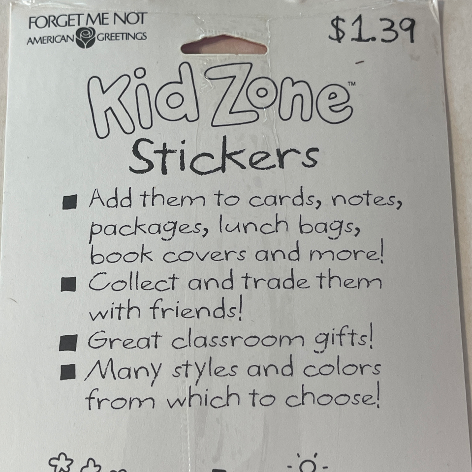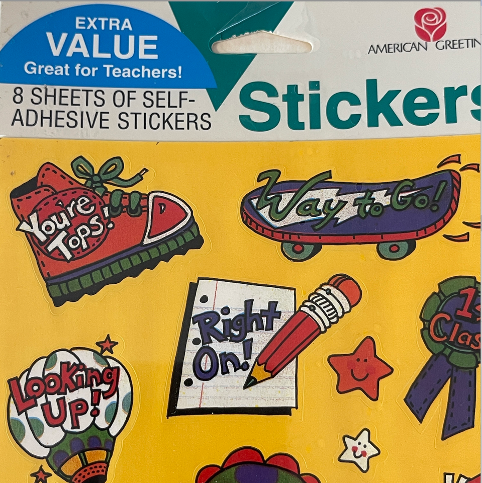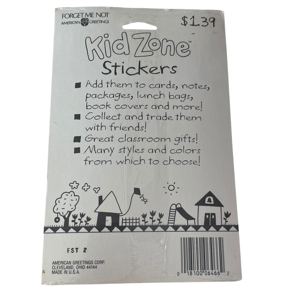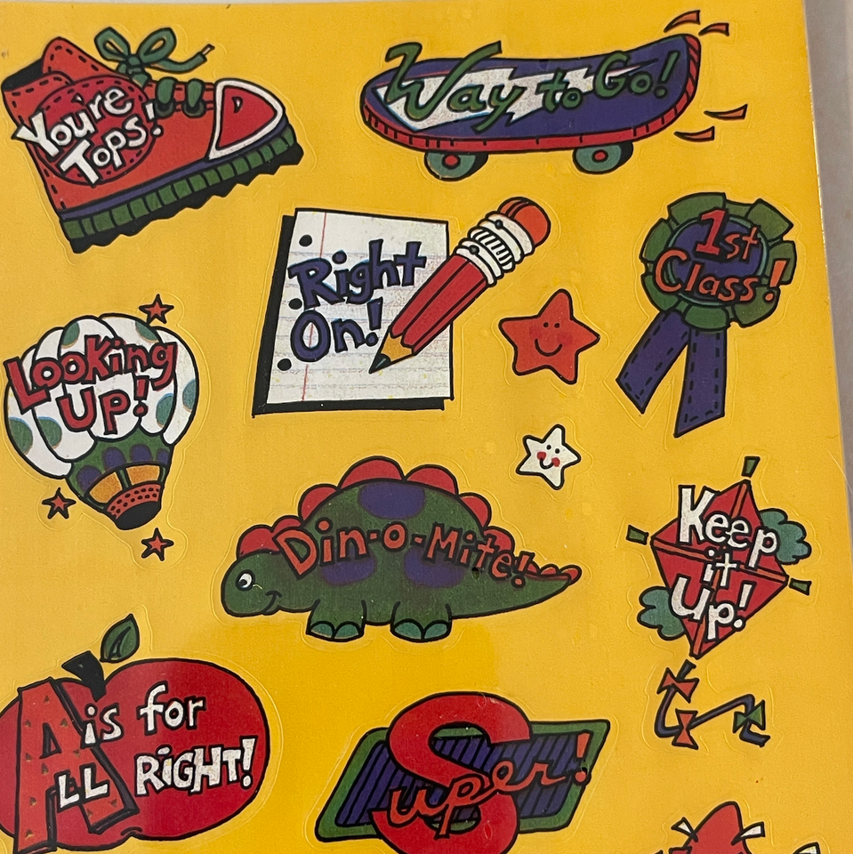 New old stock factory sealed. Vintage 1990's. Includes 2 new factory sealed packages. The "teacher" one includes 8 sheets and the kid zone sports one includes 4 sheets, 12 total sticker sheets. What a fun lot!!! Great for collecting! Made in Cleveland, Ohio USA United States. Please see all gallery photos. We are a smoke free, pet friendly home. Have a great day!