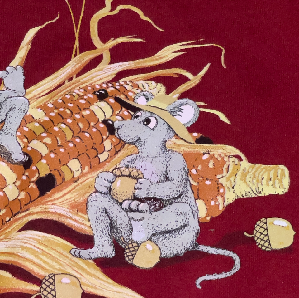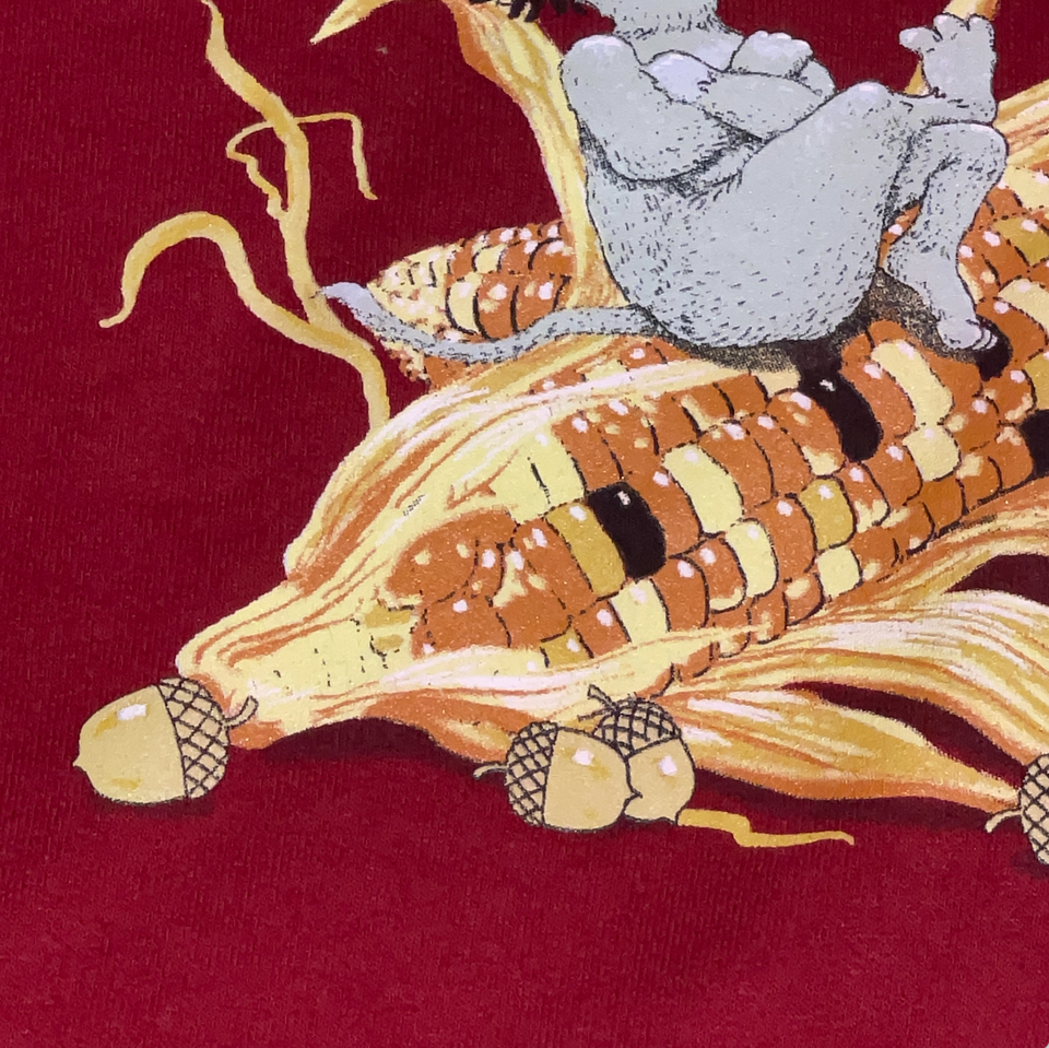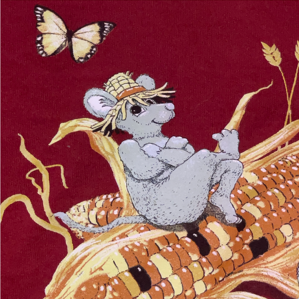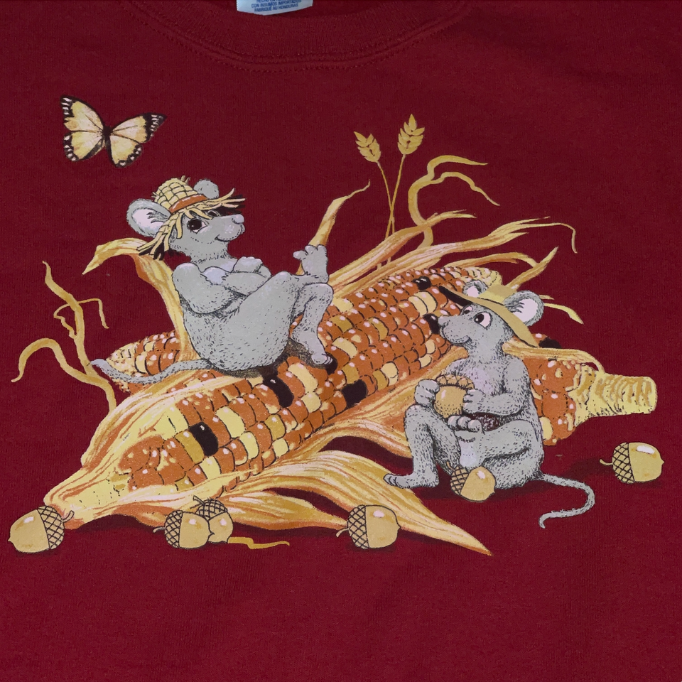 Women Small Jerzees Red Fall Harvest Corn Butterfly Mice Graphic Sweatshirt
