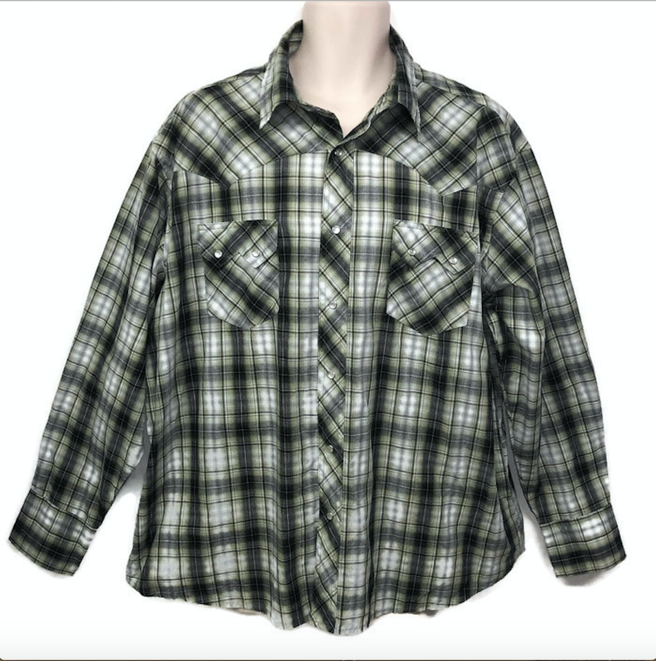 Vintage Wrangler Western Fashion Men's Pearl Snap Shirt Long Sleeve Size 2XL