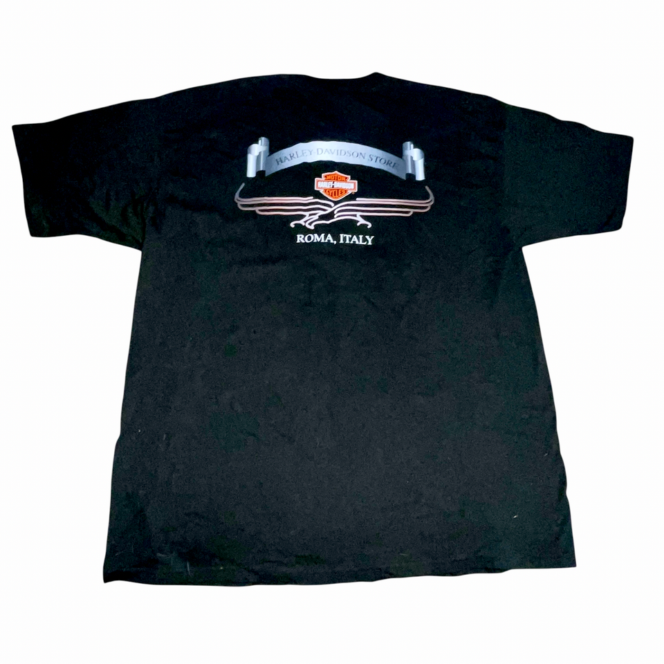 Harley Davidson Men's Black Tee Shirt ROMA, ITALY Sz 2XL Vintage 2001 Ride Free
