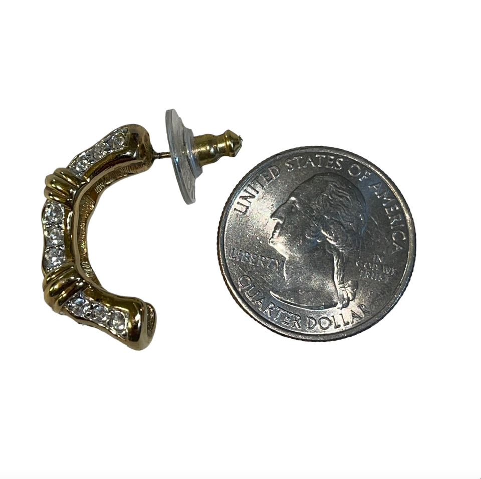 Genuine Swarovski Gold Tone Crystal Hoop Pierced Earrings Signed Swan Stamp