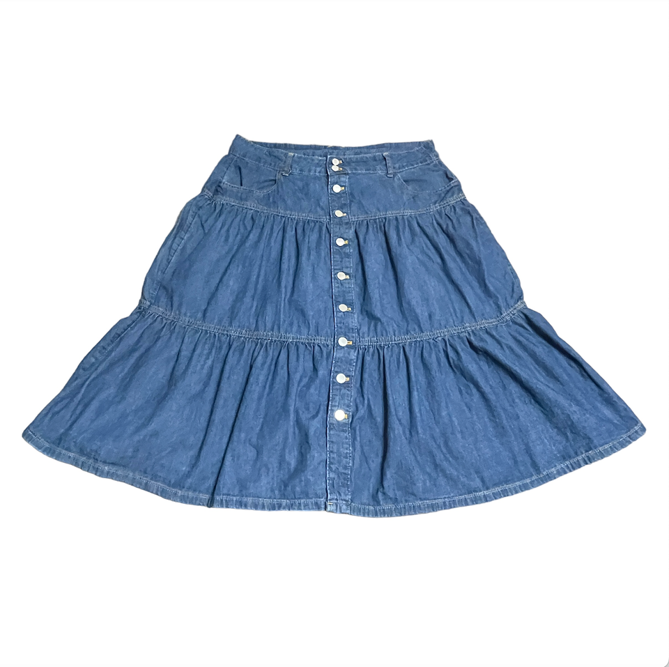 Time & Tru Tiered Peasant Skirt Full Ruffled Midi Button Front Retro Women's 16