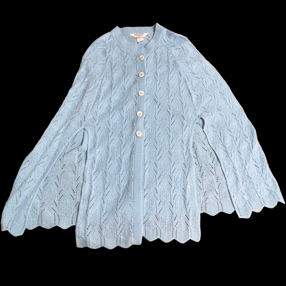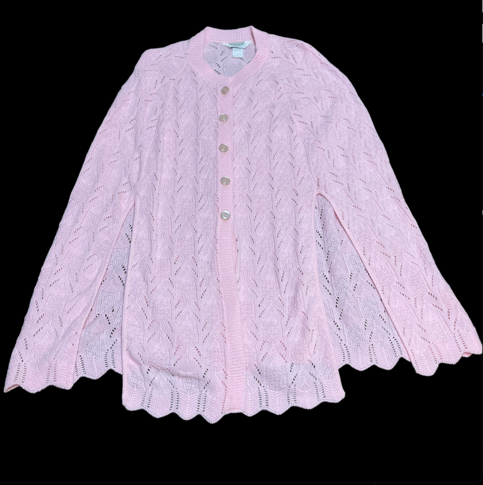 Vtg Womens Cardigan Sweater Medium Cape Shawl Open Weave Design Button USA Lot