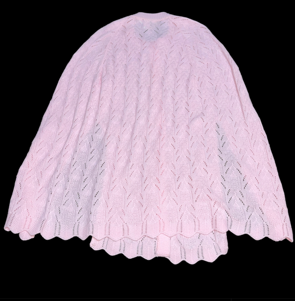 Lot of 2 vintage sweater cape shawls. Fantastic condition. Size tag M Medium, measurements in photos. COLOR: I had a hard time getting picture of exact color, but one is a light powder pink and one is a baby blue color. Features: Made in USA, 100% acrylic, button front, cable knit. Super cute retro granny core style. The sweaters would compliment many outfits! Please see all gallery photos. We are a smoke free, pet friendly home. Have a great day!