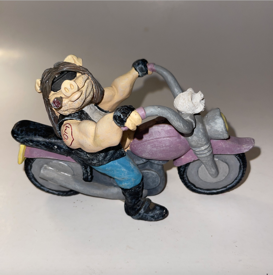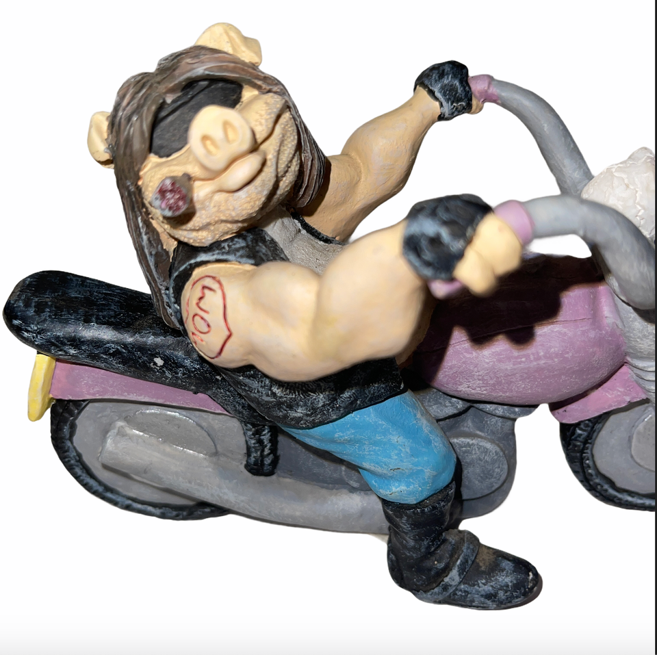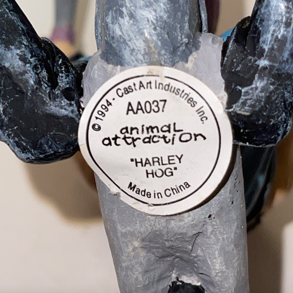 Harley Hog Tattoo Ceramic Figurine Animal Attraction 1994 CAST ART Biker Girl