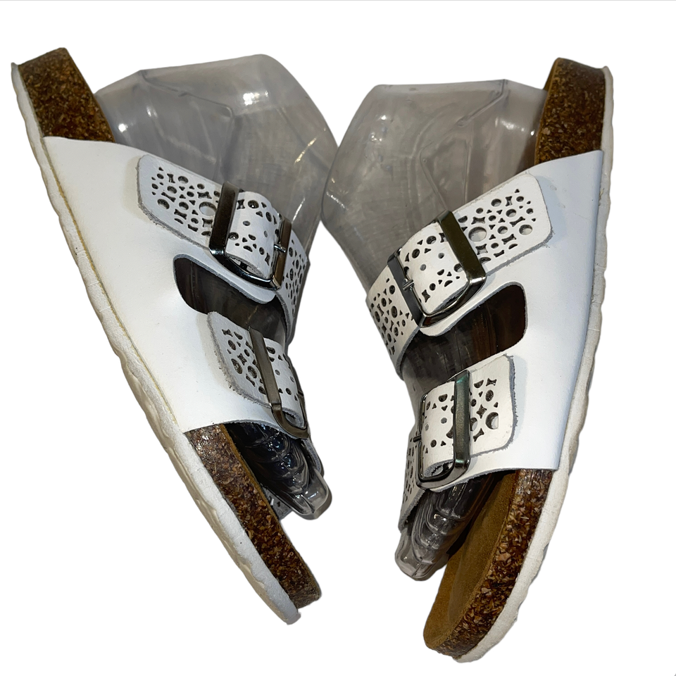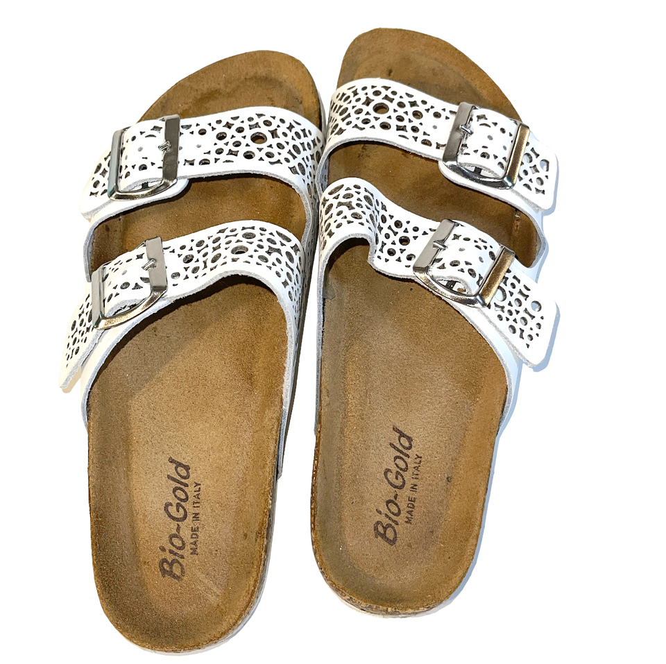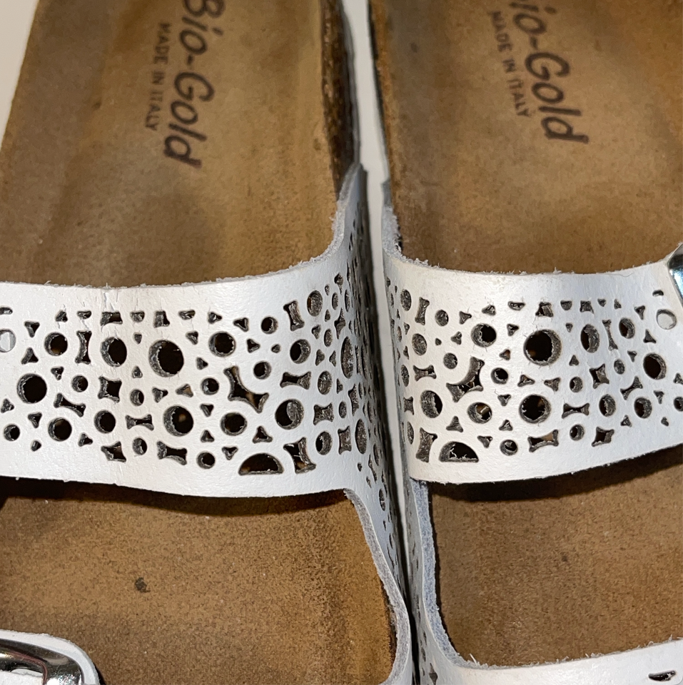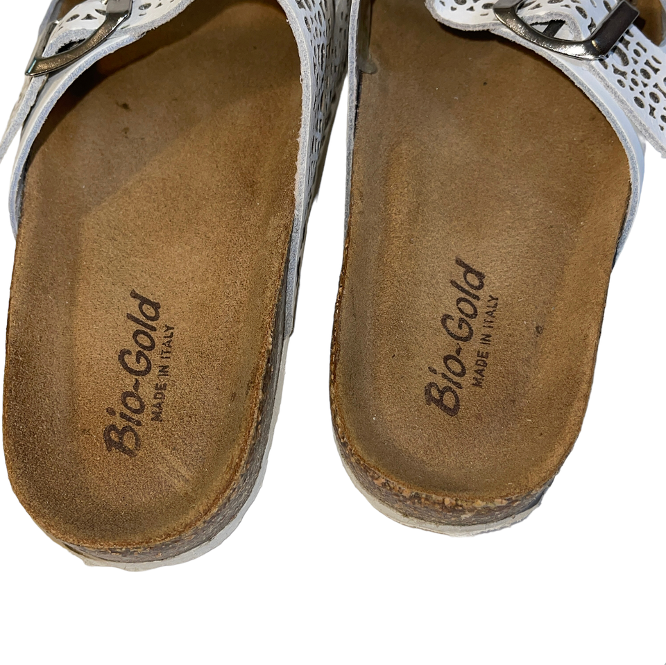 Bio-Gold Made in Italy White Leather Upper Buckle Sandals Shoes Womens Sz 8