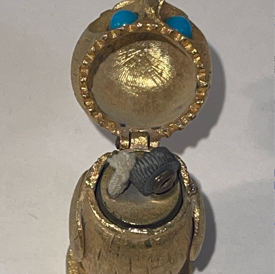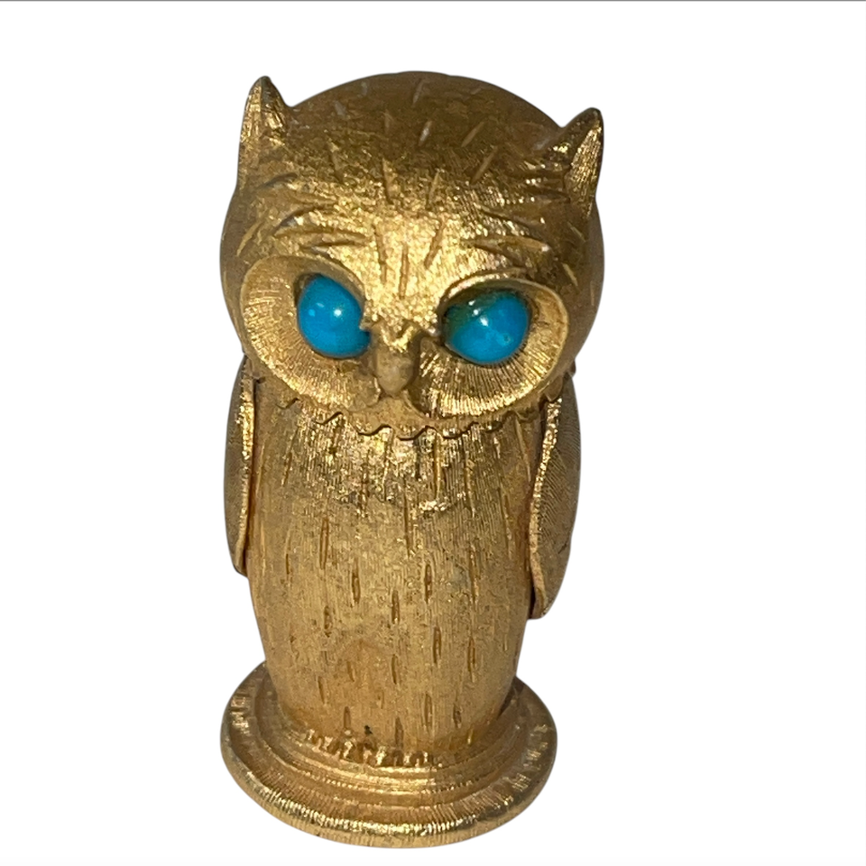 Vintage Florenza Lighter figural Owl Blue Stone Eyes Gold EVC Never Used
