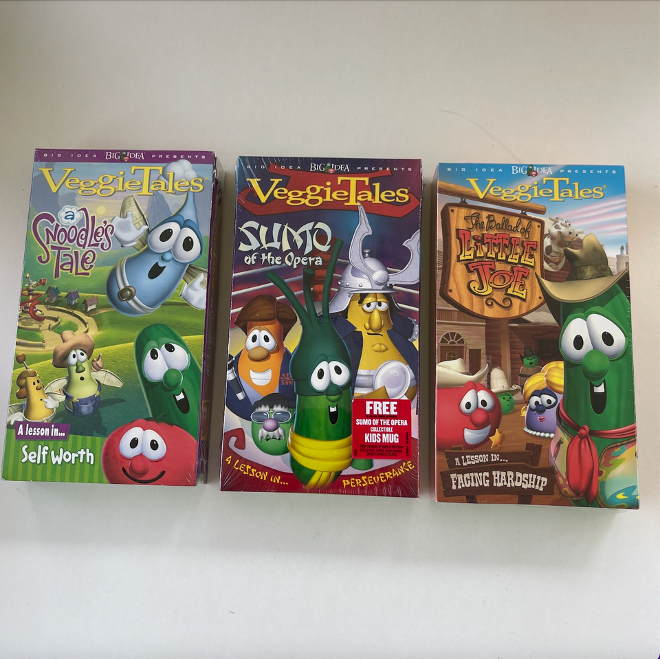Lot of 3 new sealed green VHS Christian based video tapes. Titles include: The Ballad of Little Joe (a lesson in facing hardship), A Snoodle's Tale (a lesson in self worth), Sumo of the Opera (a lesson in perseverance). Please see all gallery photos. We are a smoke free, pet friendly home. Have a great day!