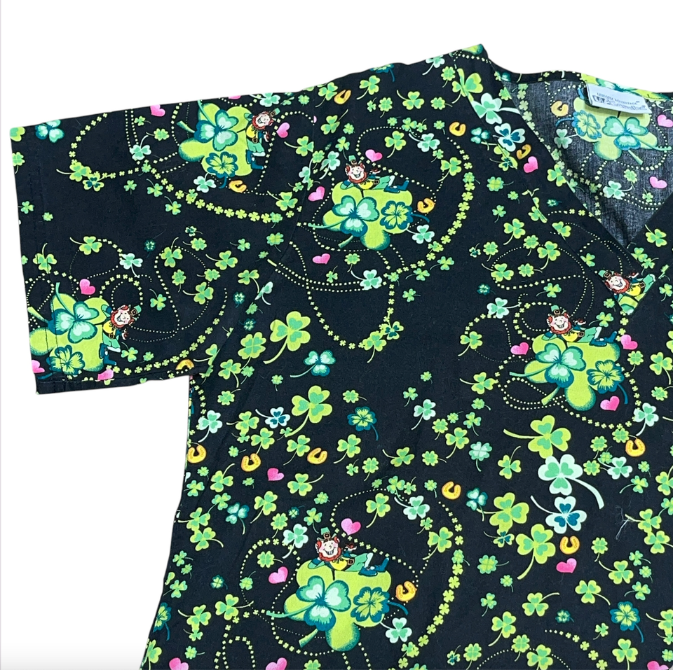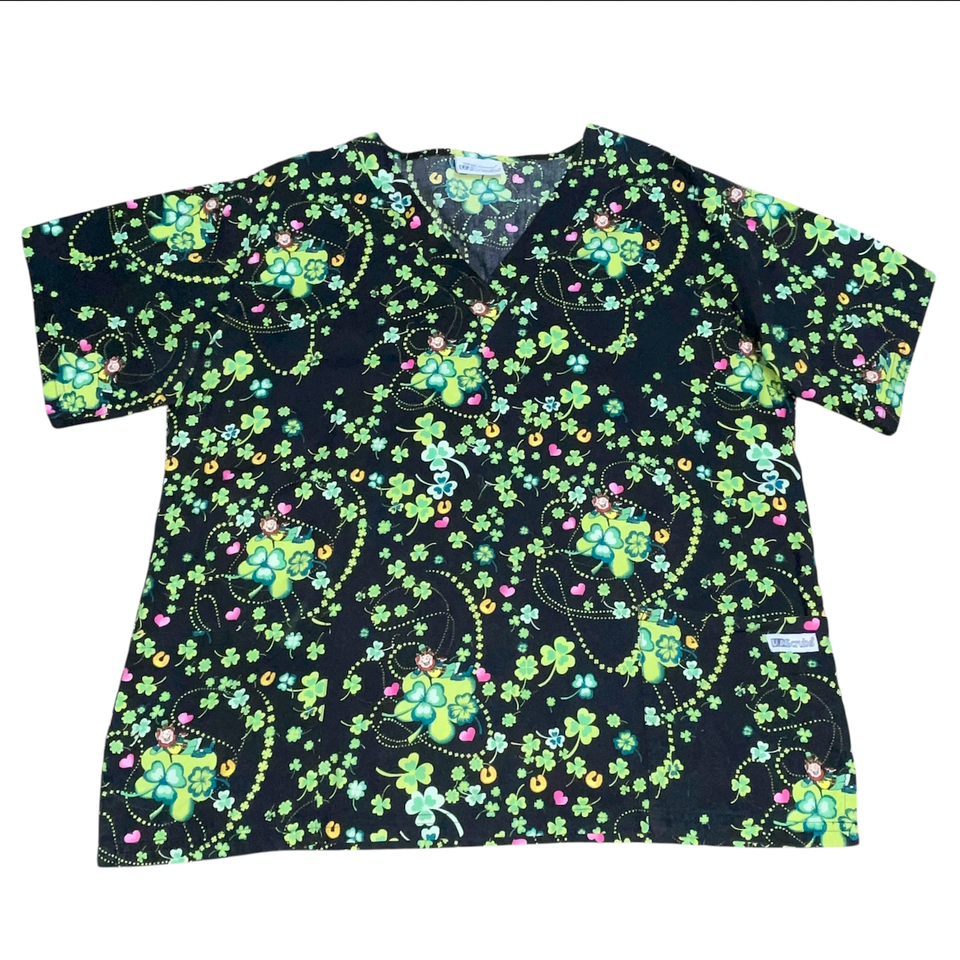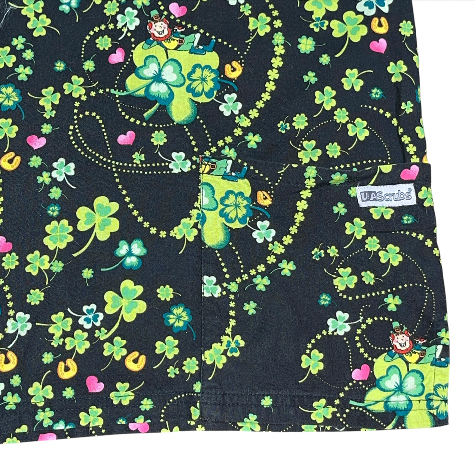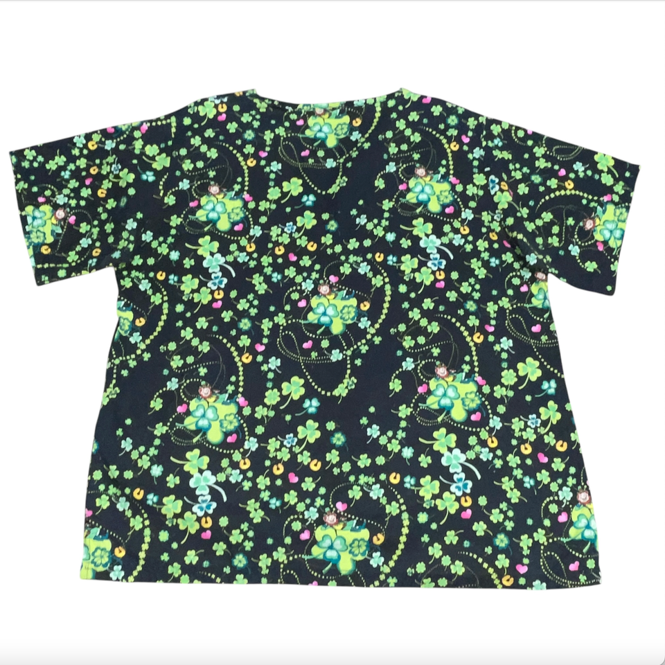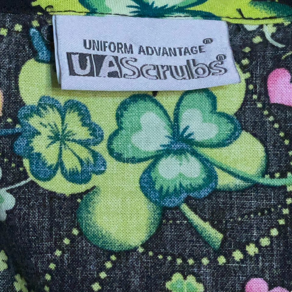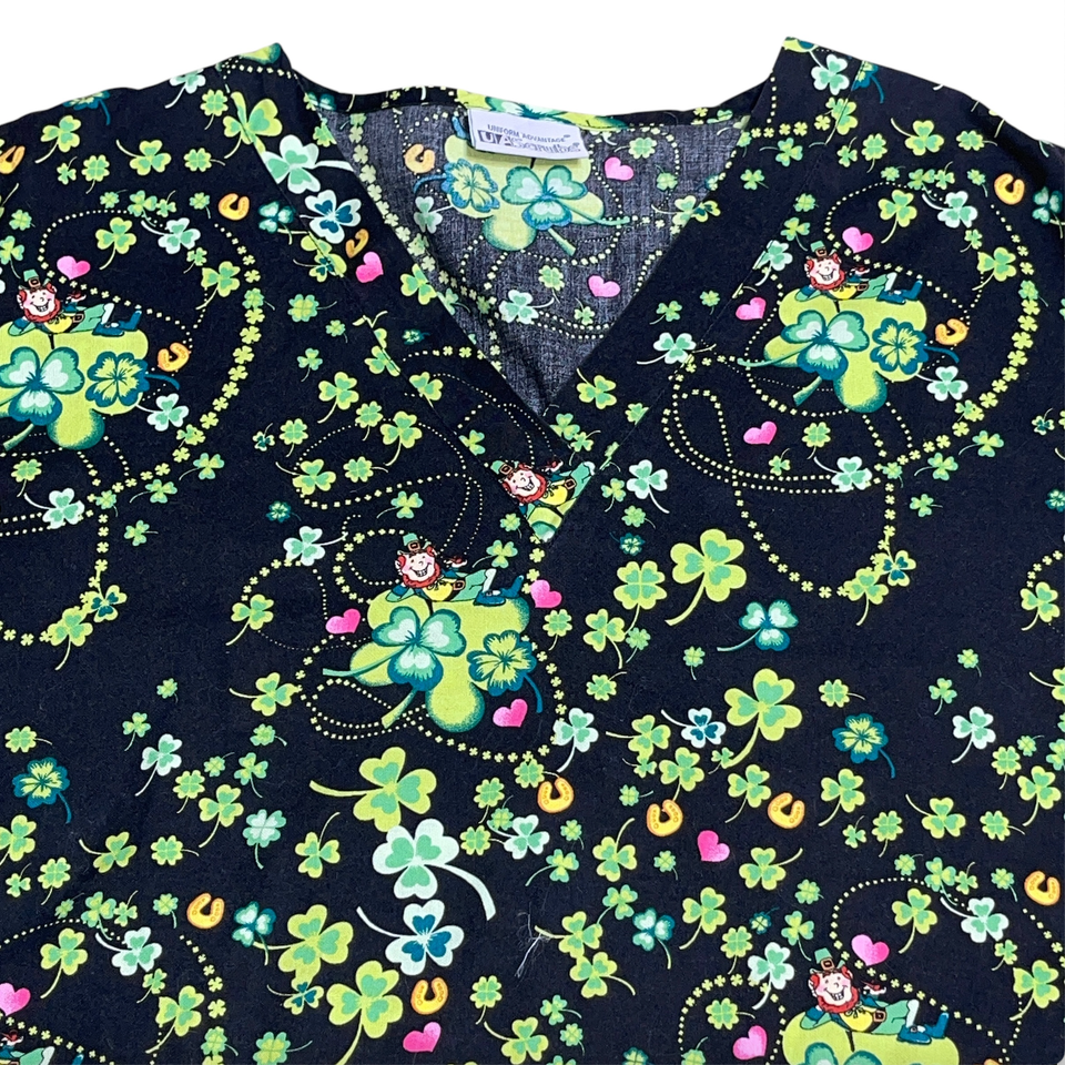 Women's Uniform Advantage St. Patty's Day Shamrock Leprechaun Scrub Top Sz XL