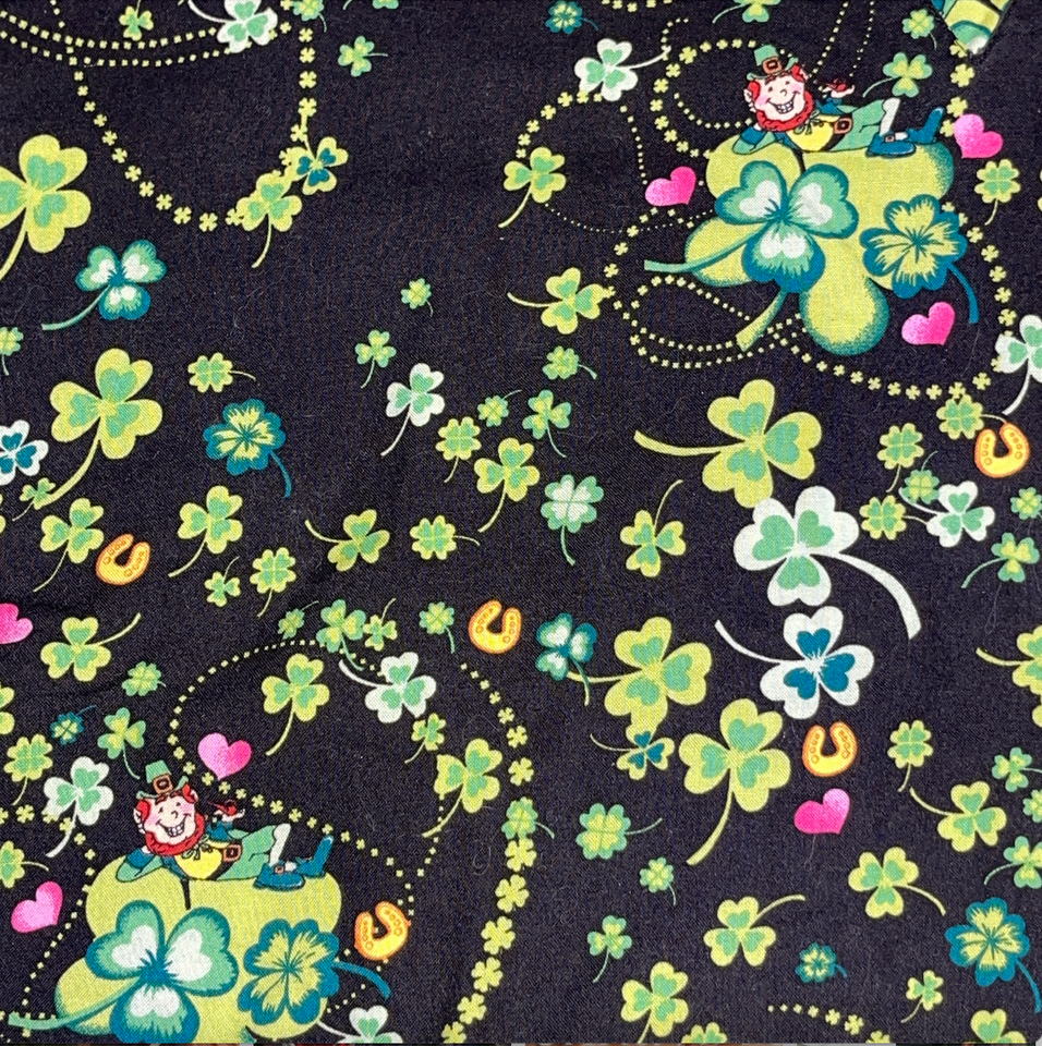 Excellent condition. Size tag is MISSING, approximate an XL extra large. Measures 24.5 inches across the chest and 28 inches overall length. Please see all gallery photos. Super cute scrub shirt for St. Patrick's Day. Black and green clovers. Lucky leprechauns! Very fun! Perfect for a nurse, vet, tech, xray, lunch line, etc. Please see all gallery photos. We are a smoke free, pet friendly home. Have a great day!