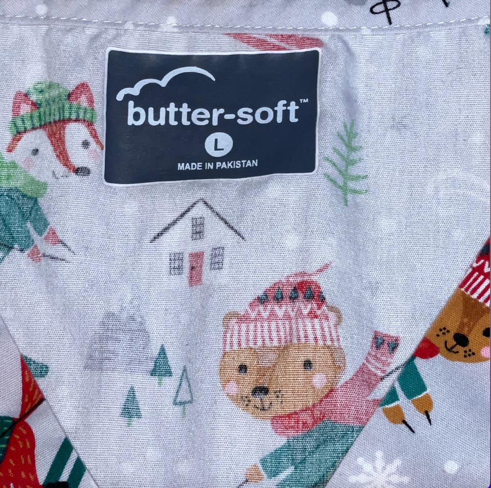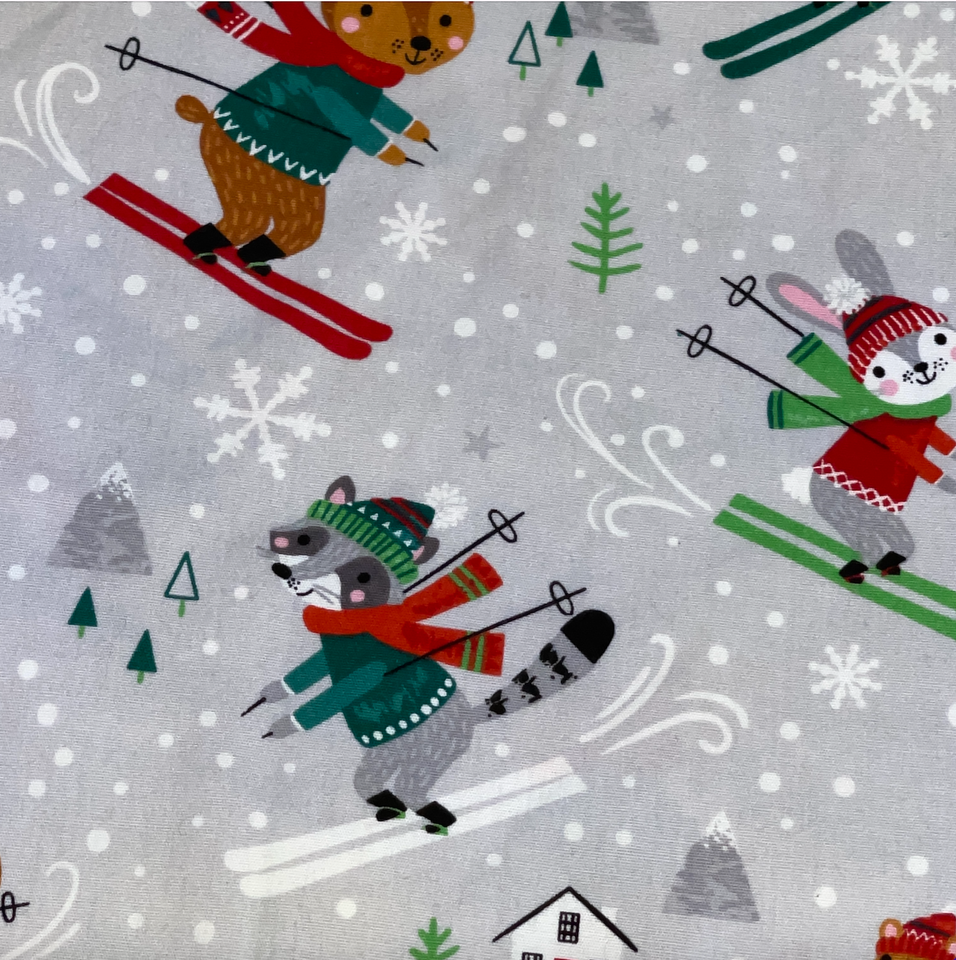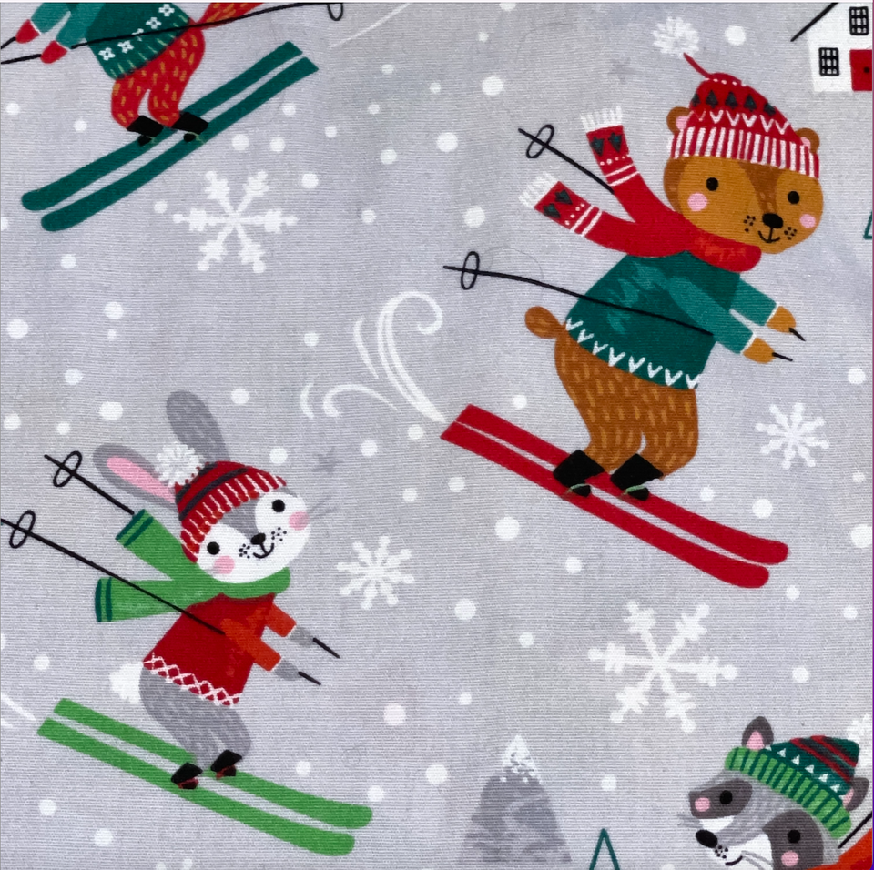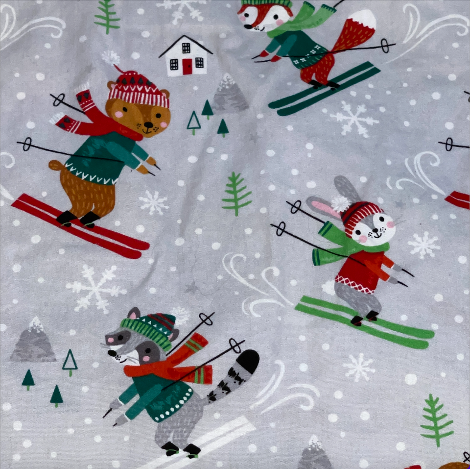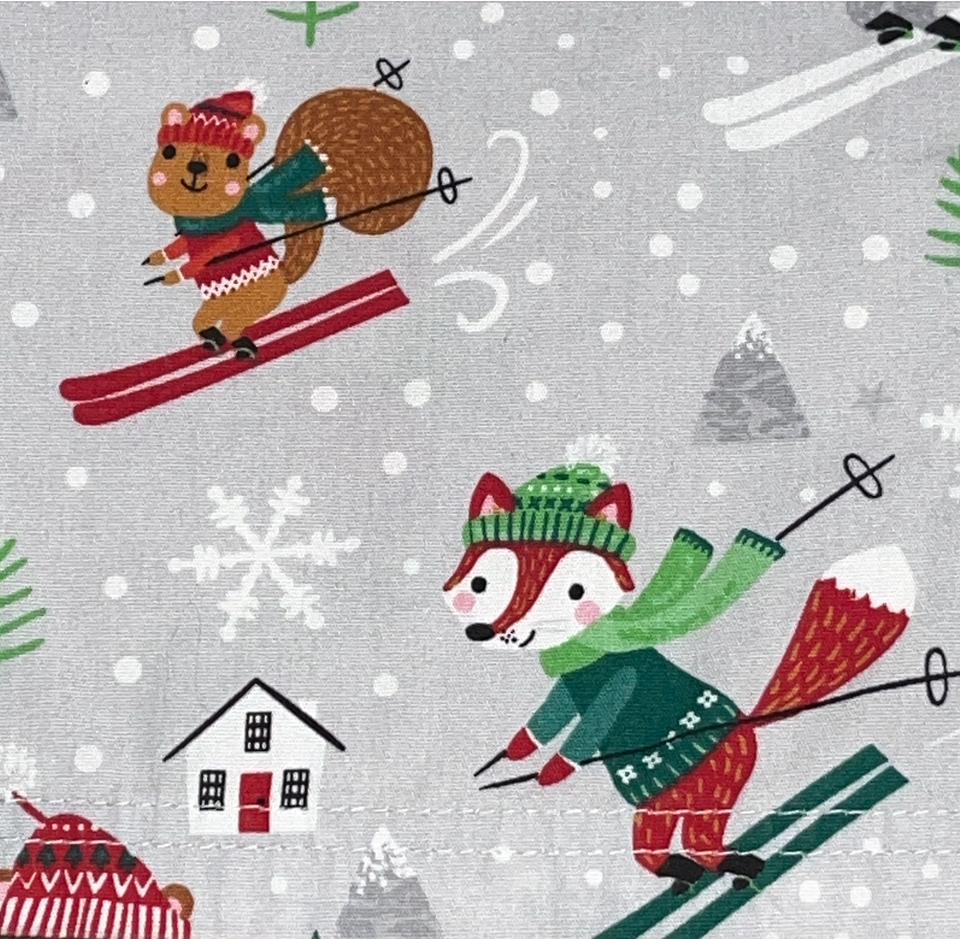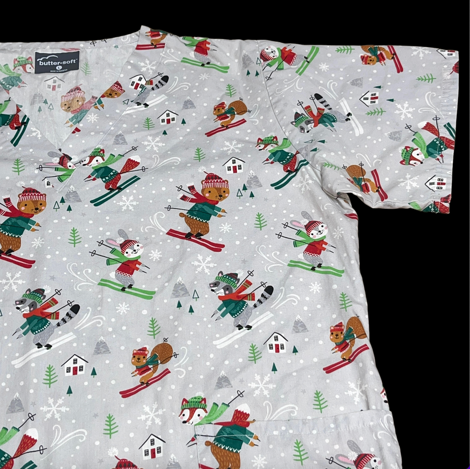 Butter Soft Large Gray Skiing Snowflake Raccoon Squirrel Fox Bunny Scrub Shirt