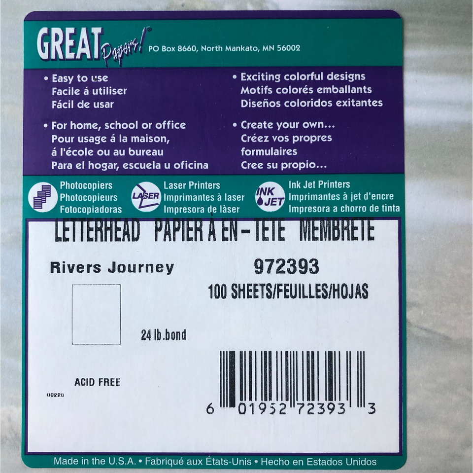 GREAT PAPERS Letterhead Rivers Journey 100 Sheets Sealed Package Acid Free New
