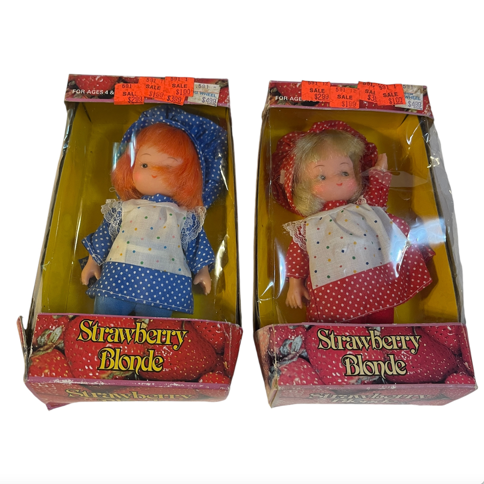 Vintage Lot of 2 Strawberry Blonde Doll Strawberry Shortcake Clone Dolls Box