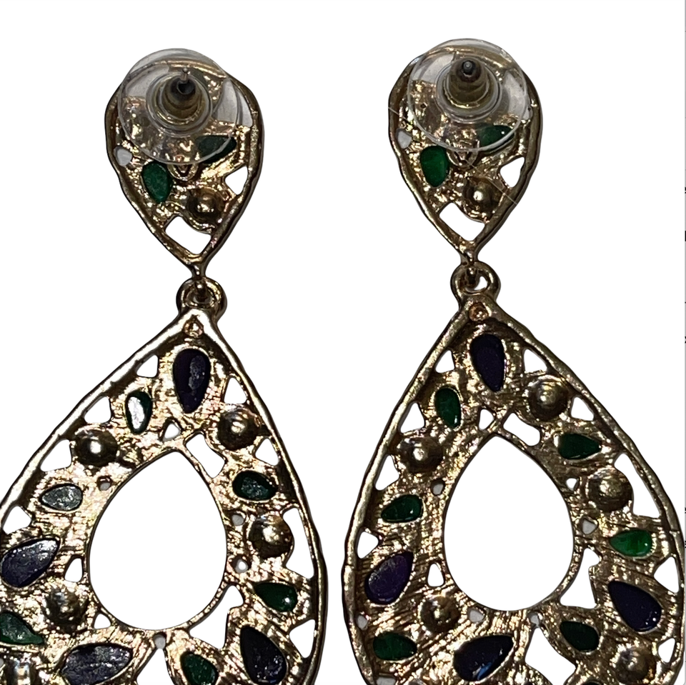 Great condition. Measures 2.75 inches long and 1.25 inches wide. Pierced earrings, so fun! Please see all photos. We are a smoke free, pet friendly home. Have a great safe day!