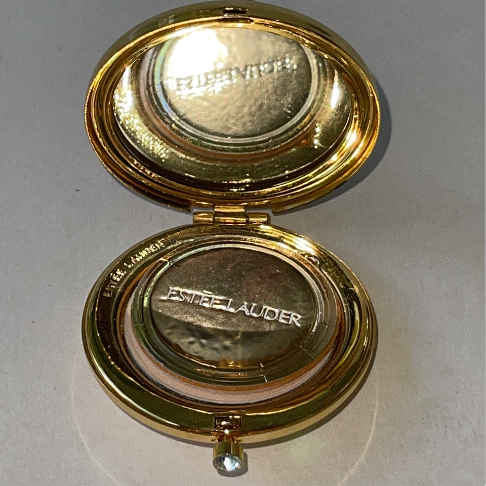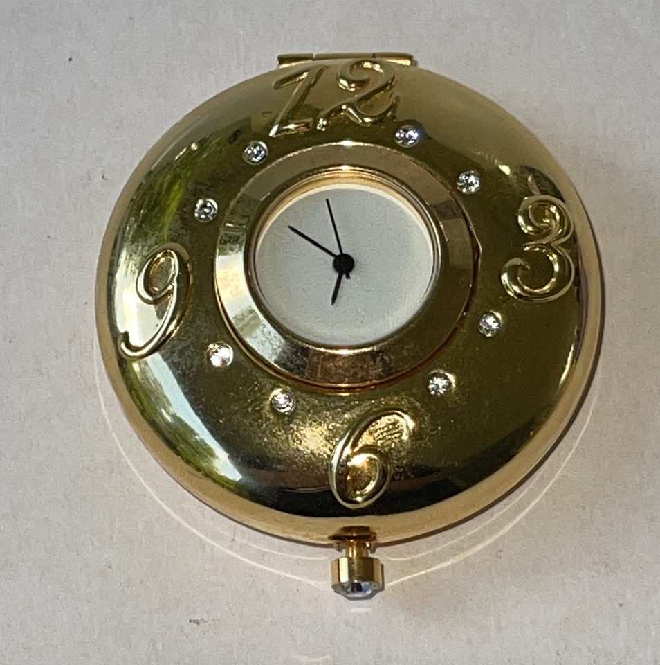 Vintage Estee Lauder Gold Tone Watch Clock Rhinestone Compact Lucidity Powder 06