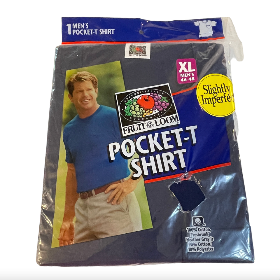 NEW 1998 Fruit of The Loom 1 Pocket T-Shirt Cotton Navy Blue Men's XL IMPERFECT