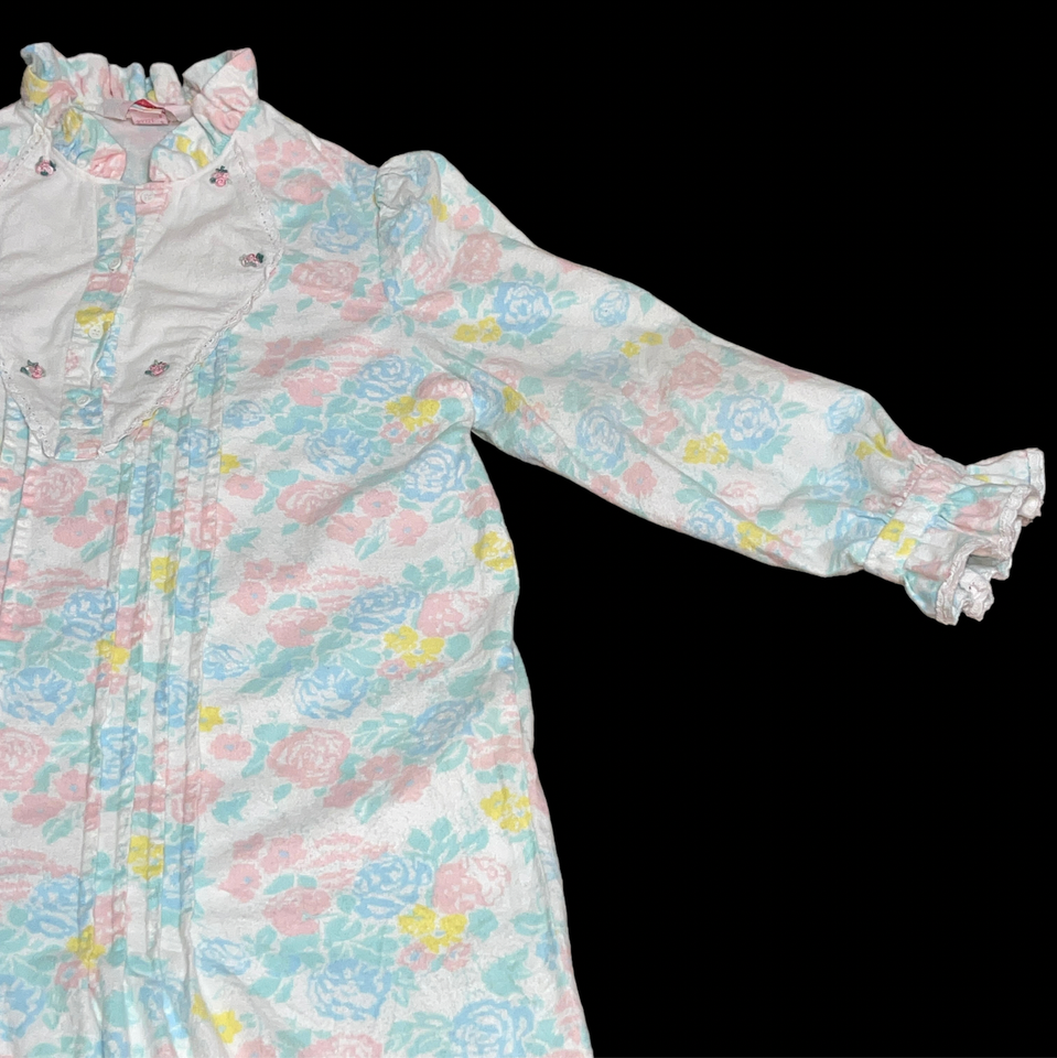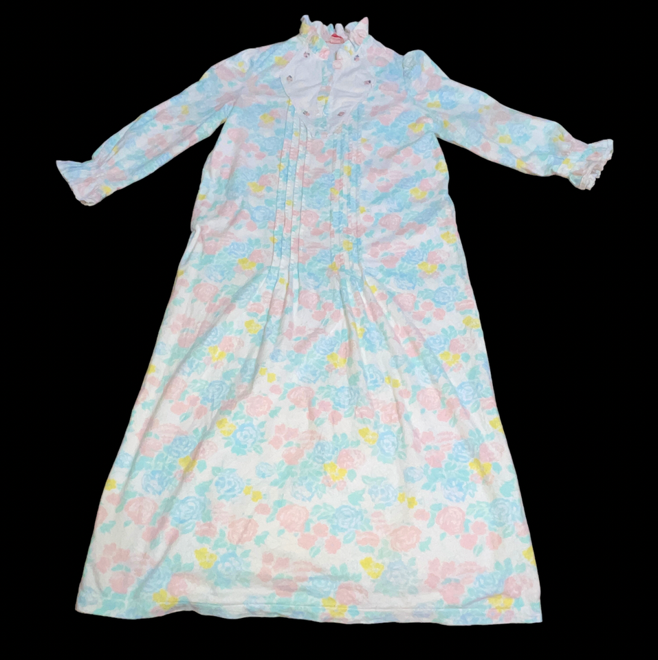 Excellent condition. Super soft and cozy. Women's size tag M medium 12 - 14. Measures 22 inches across the chest, 51 inches overall length, 23 inch long sleeves. Features: 100% soft cotton flannel, all over floral print, long sleeves with trim, pleated in front, one front side pocket, flower appliques on chest area. Very pretty and feminine warm night gown. Sears Roebuck Co. Please see all gallery photos. We are a smoke free, pet friendly home. Have a great day!