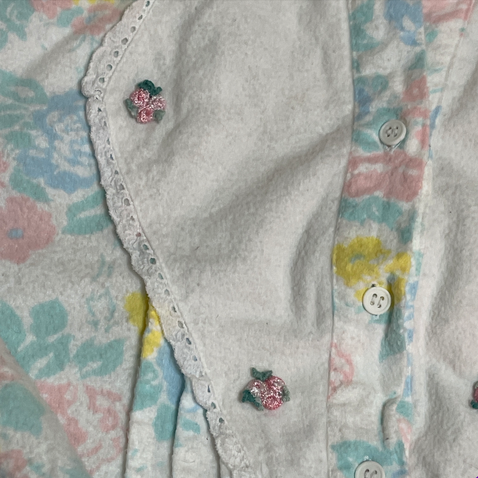 Carriage Court Nightgown Cotton Flannel Medium White Blue Pink Floral Pocket