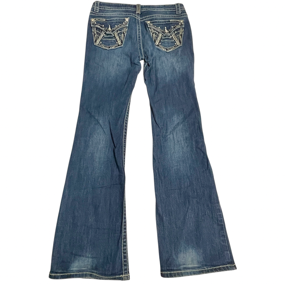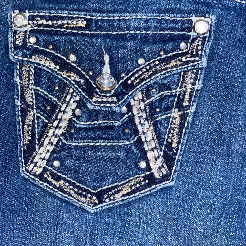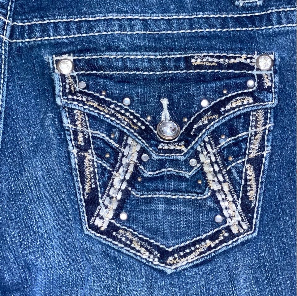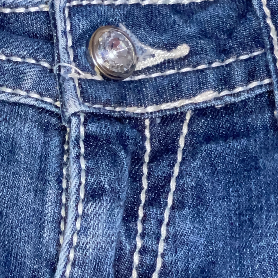 Very good condition. Size tag 30/10, full measurements in photos. Nice pair of denim jeans. Features: rhinestones embroidered back flap pockets. Please see all gallery photos. We are a smoke free, pet friendly home. Have a great day!