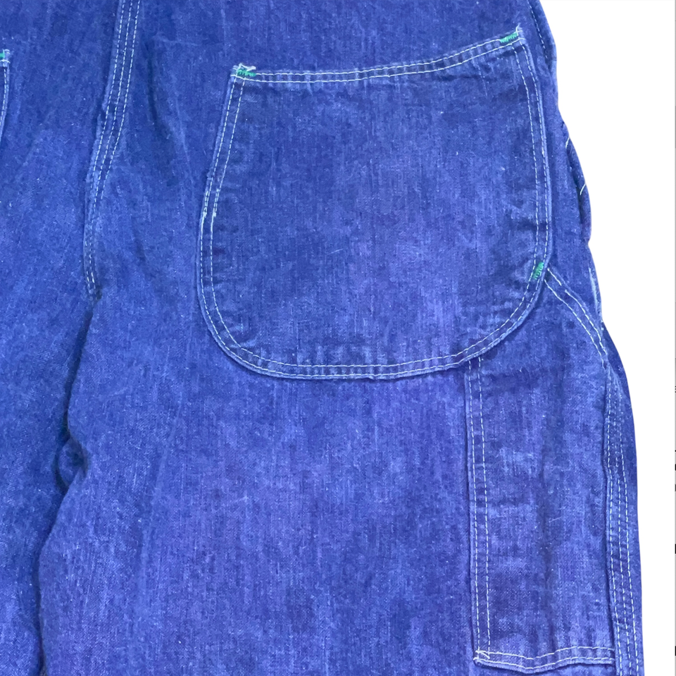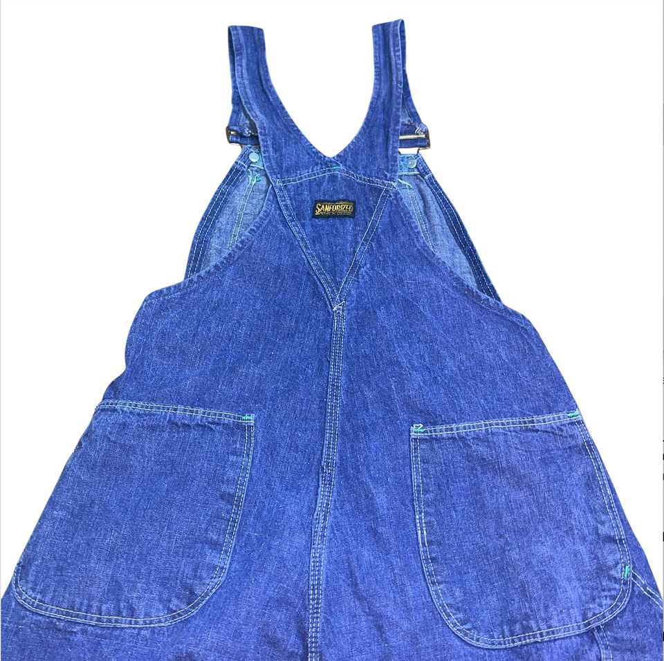 Vintage Sanforized USA Made Denim Overalls 29 x 28 1970's Blue Jean Button Fly